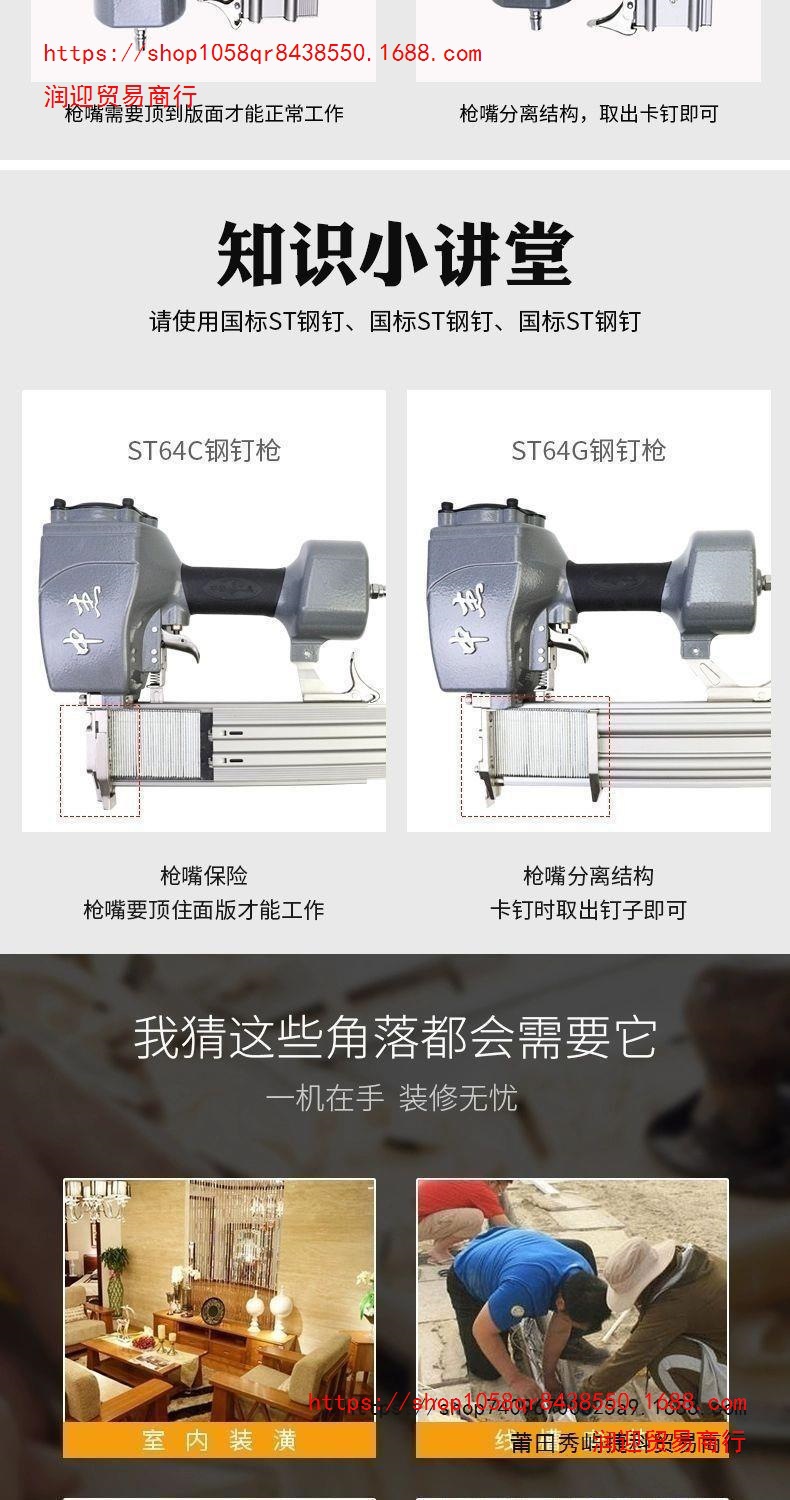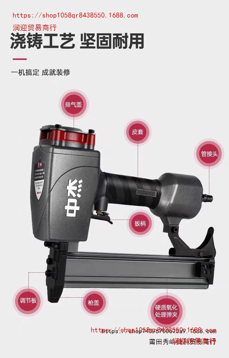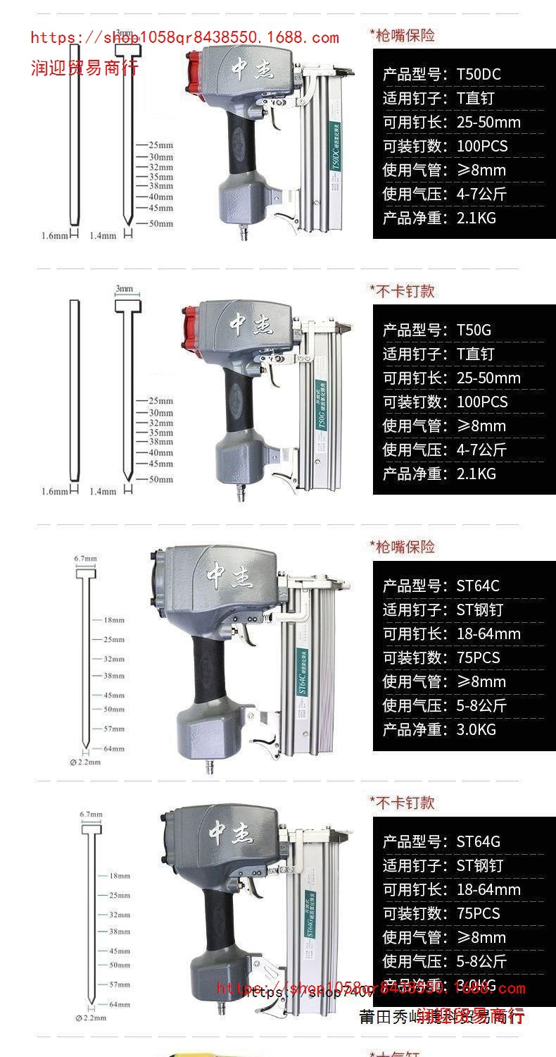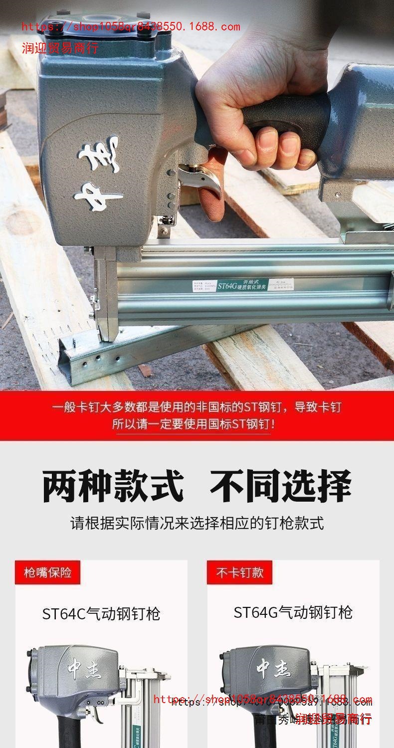 Zhongjie 공압 스틸 네일 건 T38/T64 스틸 네일 안티 스탬핑 확장 입 케이블 슬롯 스틸 행 건 장식 목공 도구스토어 가기