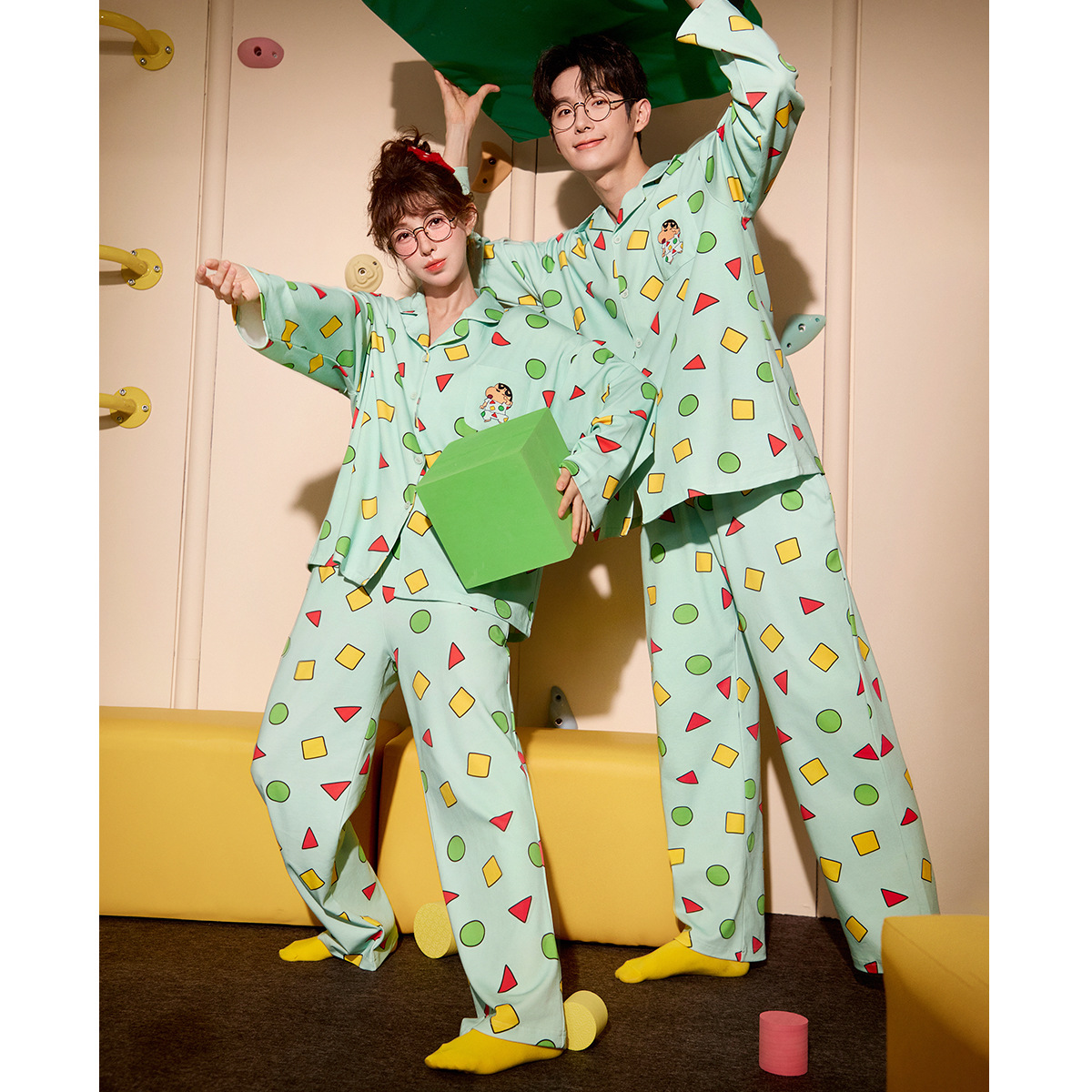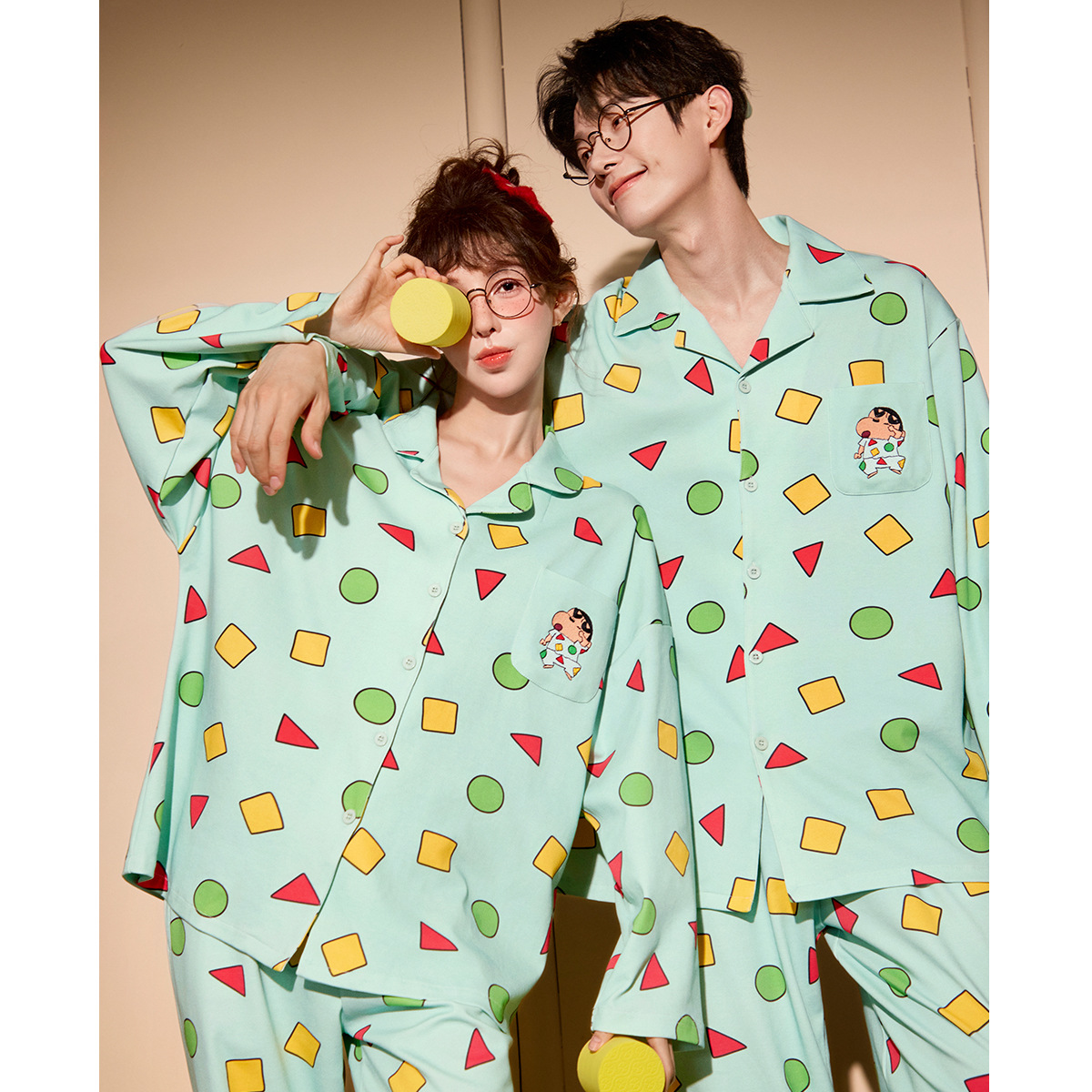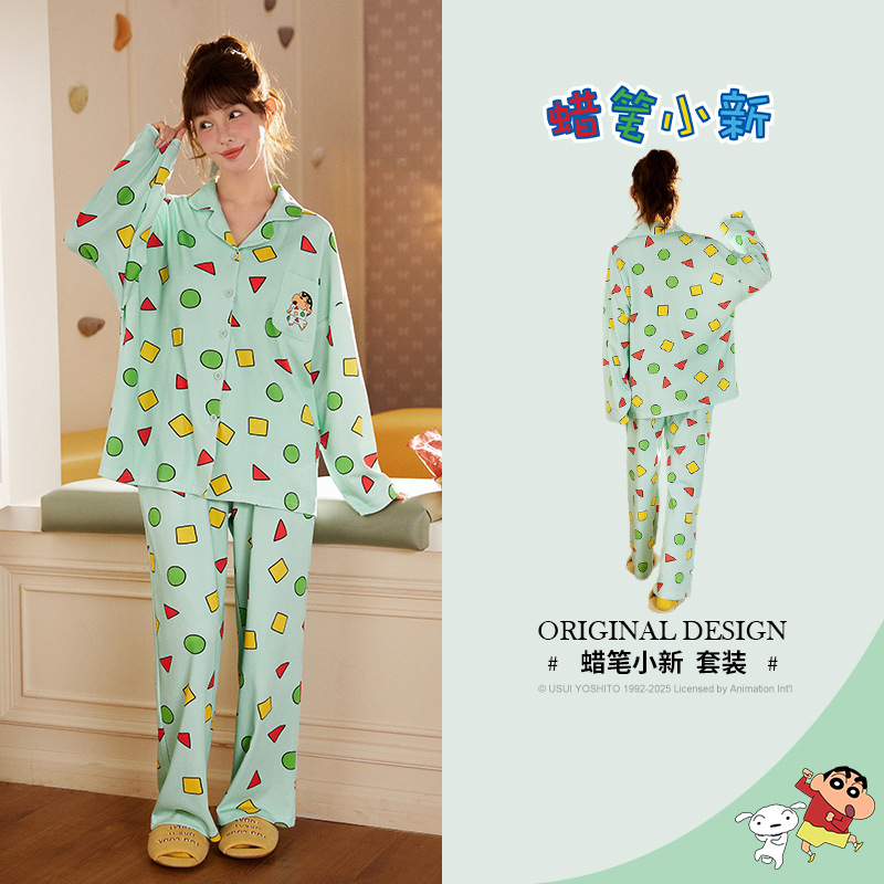 Runma [라이트 소프트] 크레용 신짱 긴팔 커플 잠옷 여성 봄, 가을 만화 순수 코튼 홈웨어 세트스토어 가기