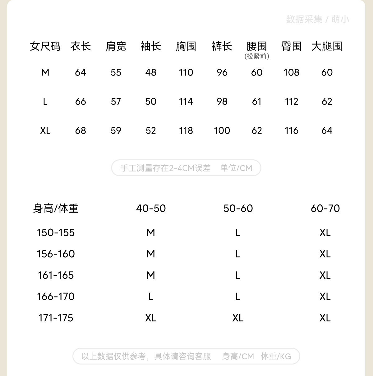 • 여성 L(권장 50-60kg)
