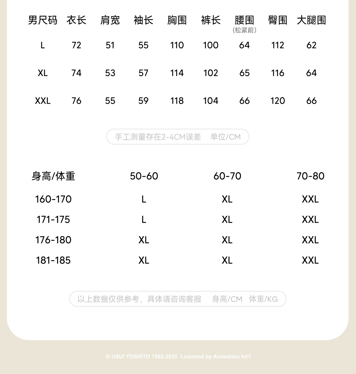 • 남성 XXL(권장 70-80kg)