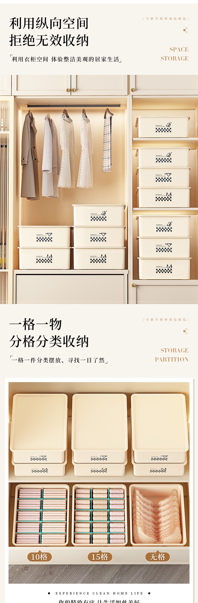 • 크림색 - 뚜껑 포함 [속바지 상자/10칸] 방충 및 진드기 방지 아로마테라피 포함