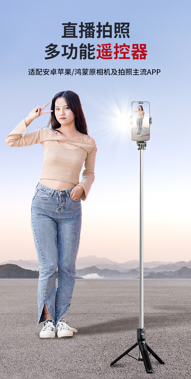 미니 휴대 전화 블루투스 셀카 스틱 G6 1.2m 높이 라이브 방송 스탠드 삼각대 범용 LED 조명