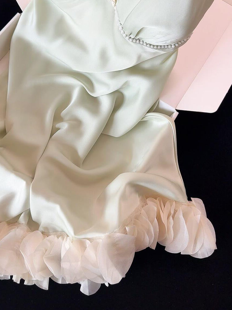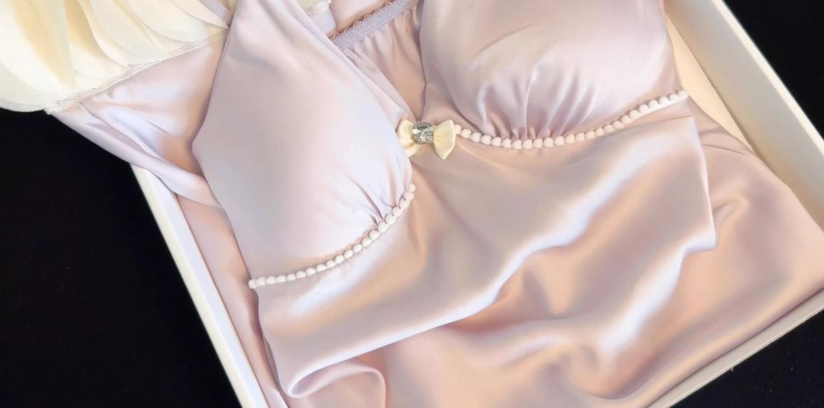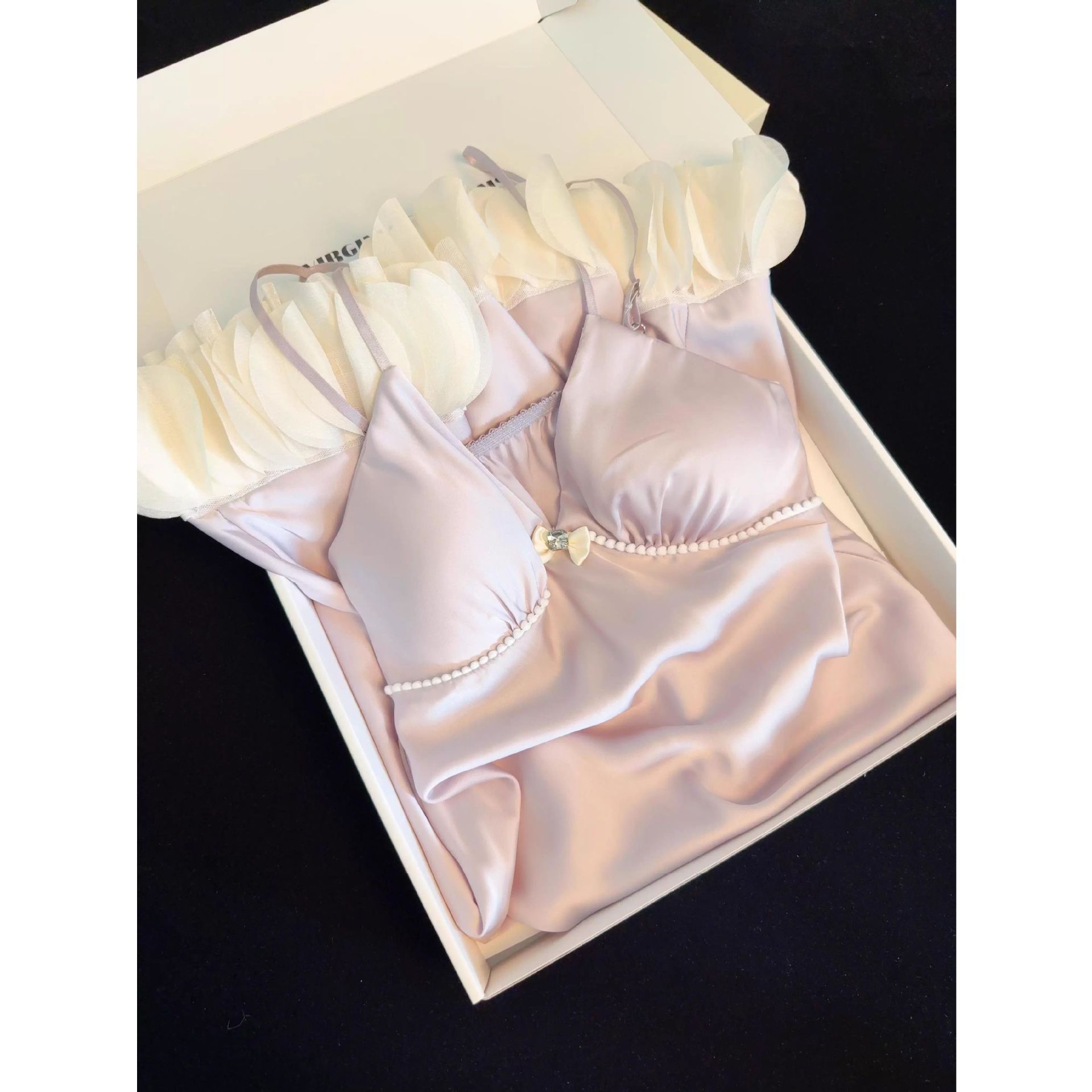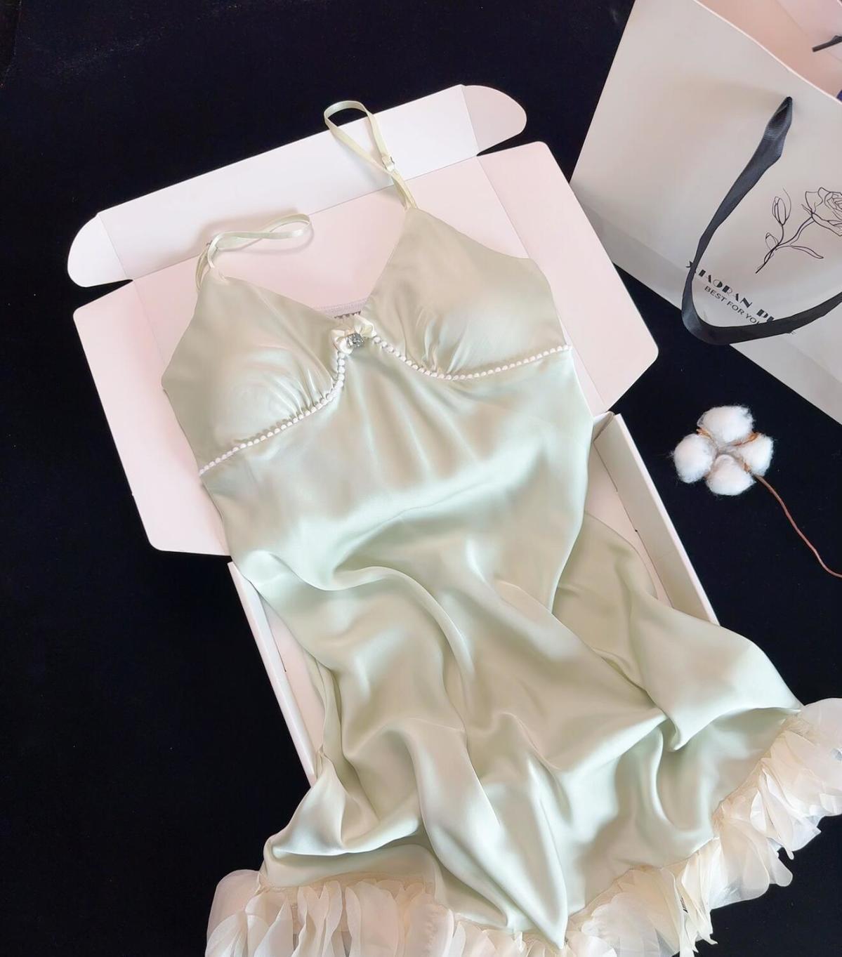 여성을위한 유방 패드가있는 프랑스 달콤한 꽃잎 얼음 실크 잠옷 2025 여름 새로운 대형 홈웨어 드레스 겉옷