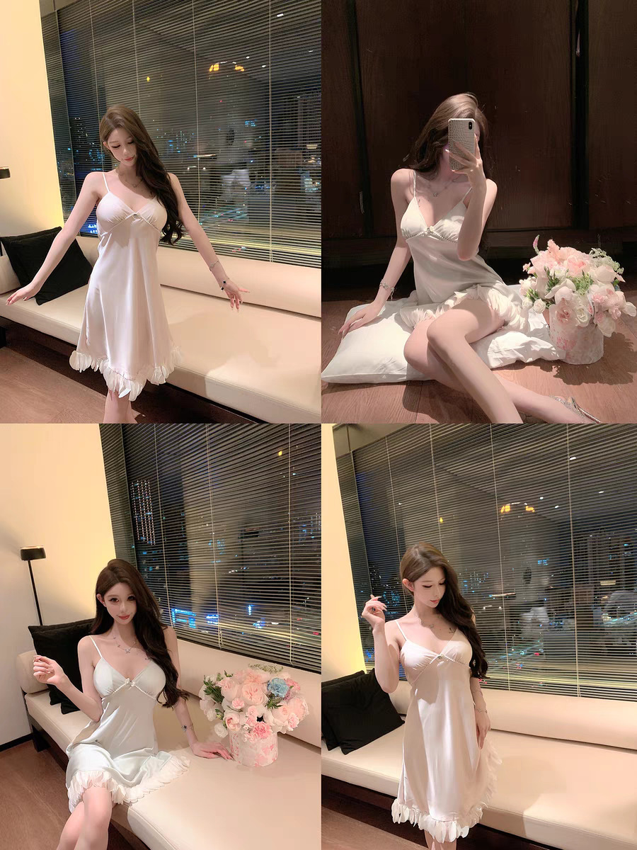 여성을위한 유방 패드가있는 프랑스 달콤한 꽃잎 얼음 실크 잠옷 2025 여름 새로운 대형 홈웨어 드레스 겉옷스토어 가기