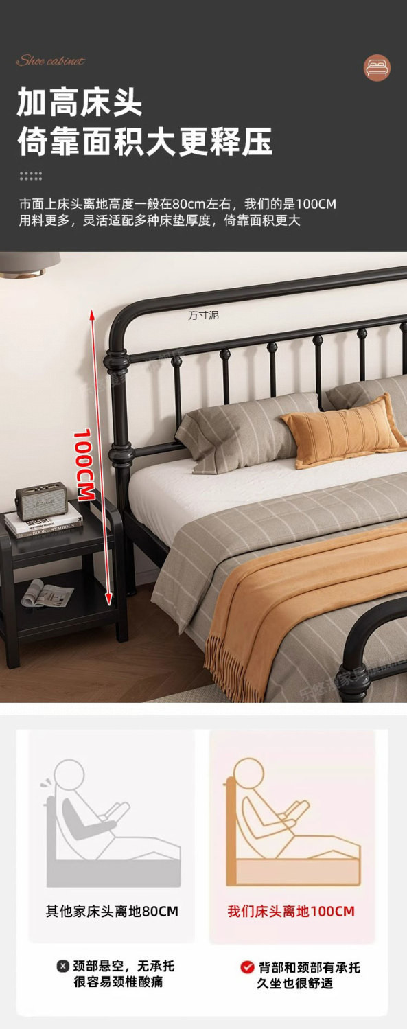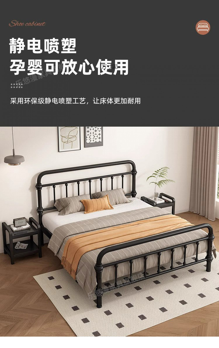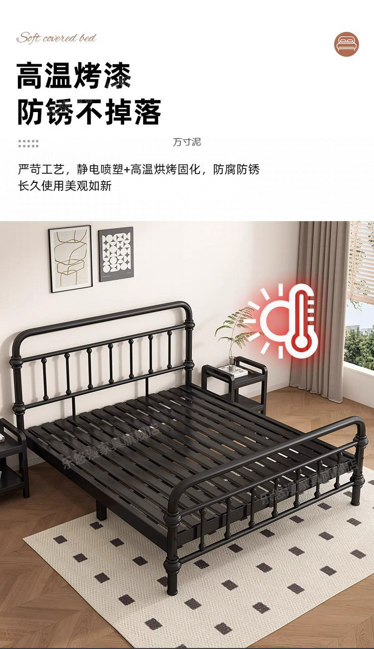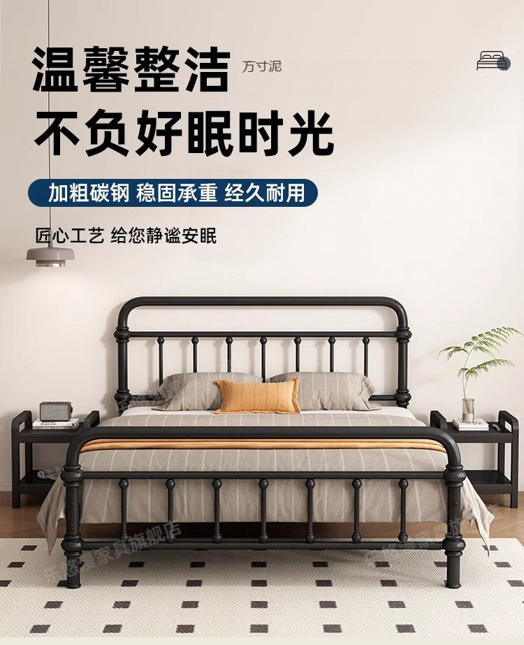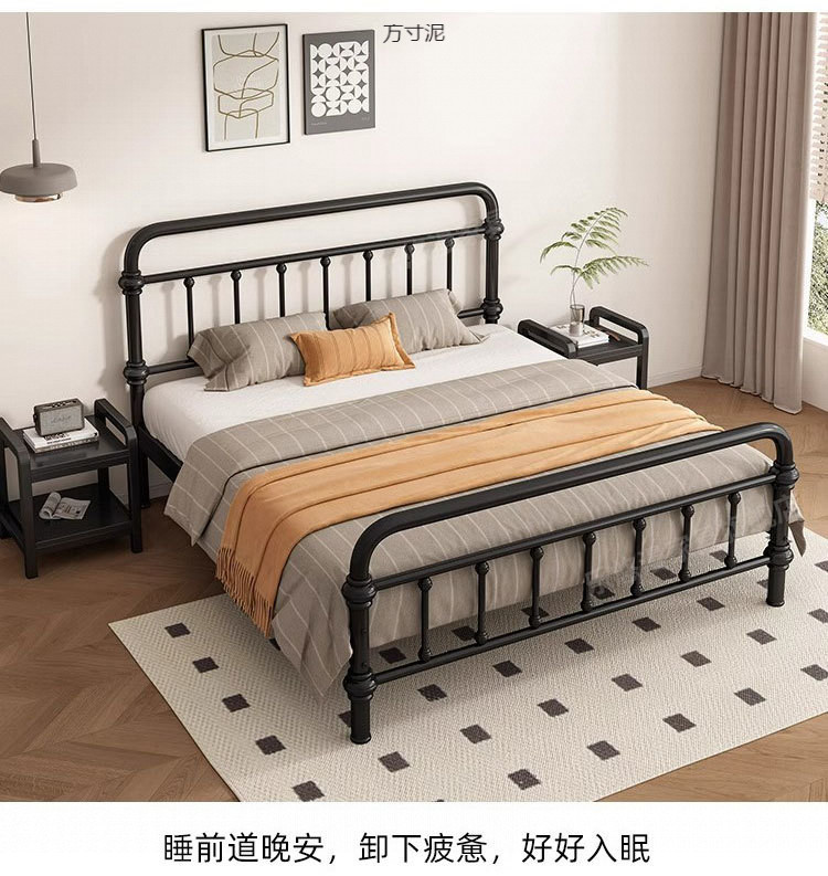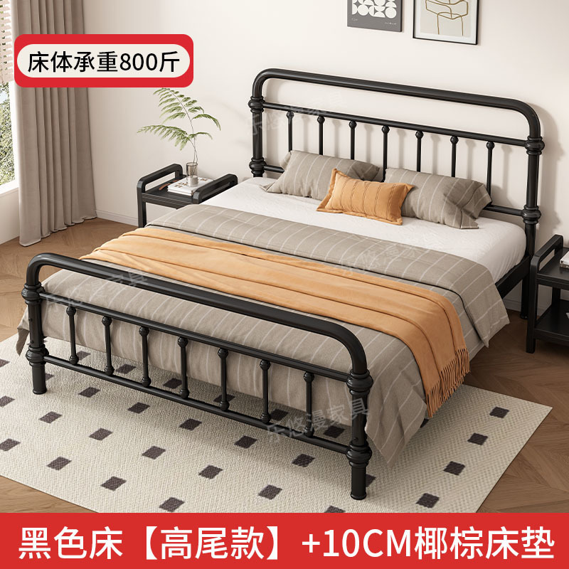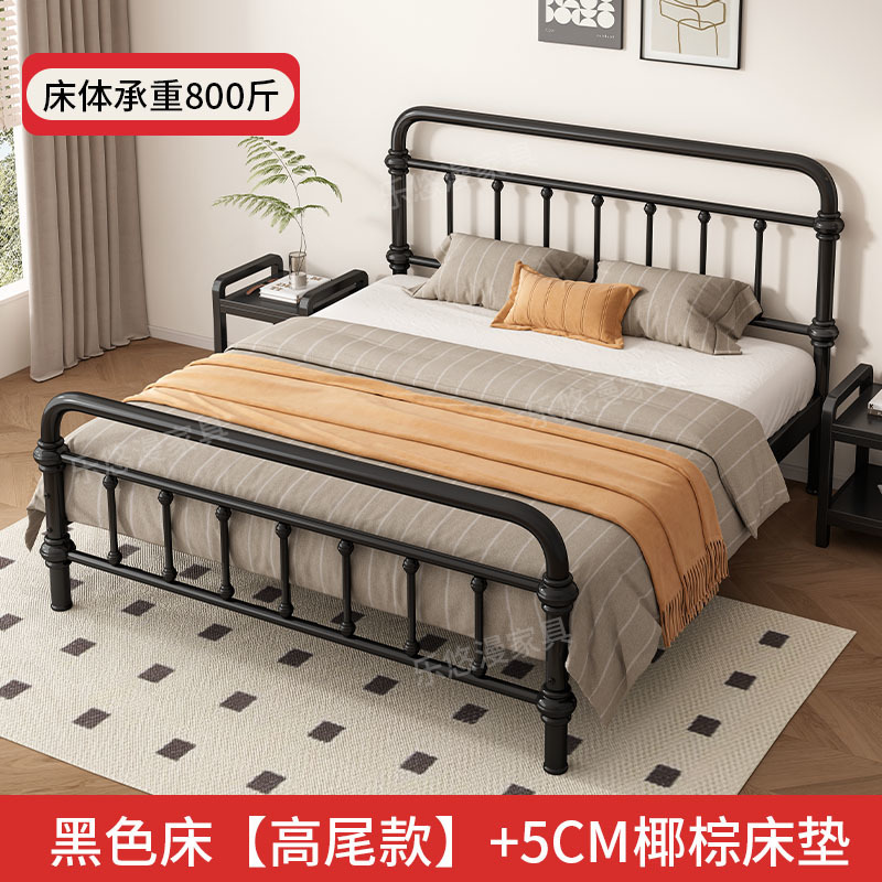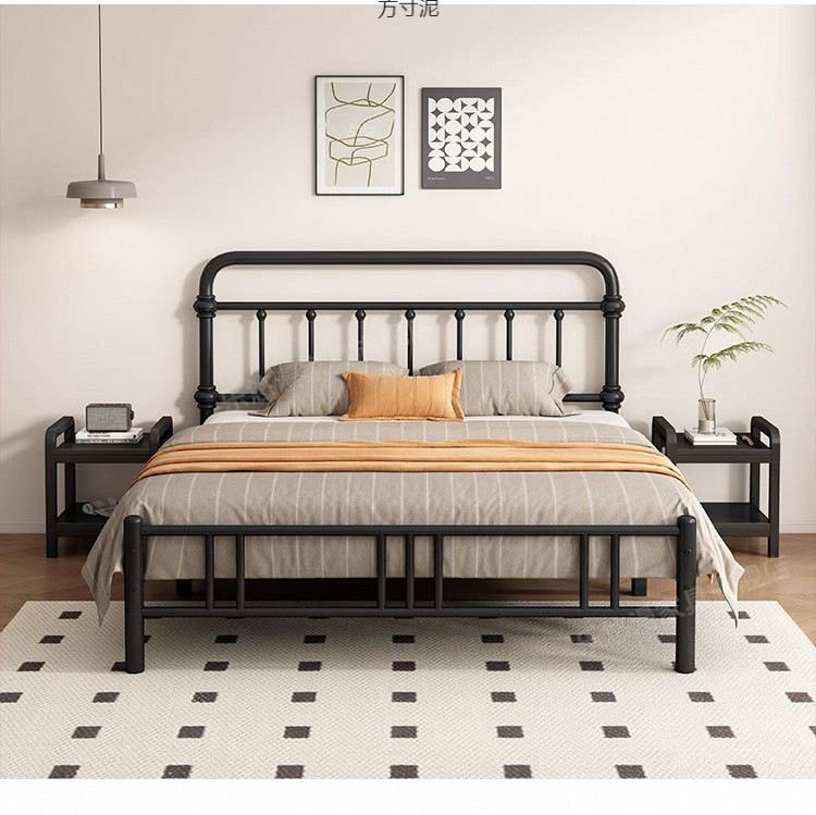 철제 더블 침대 현대 가정용 1.8m 철제 침대 1.5m 기숙사 싱글 침대 인터넷 연예인 임대 집 철제 프레임 침대