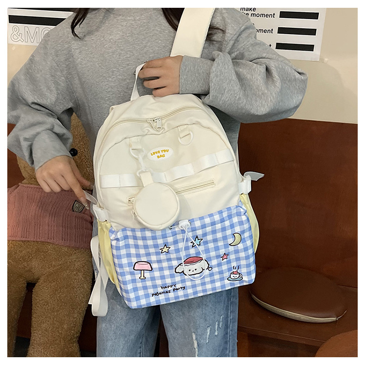 고급스러운 대용량 배낭 새로운 창조적 인 격자 무늬 소녀 여행 배낭 귀여운 대학생 가방 여성스토어 가기