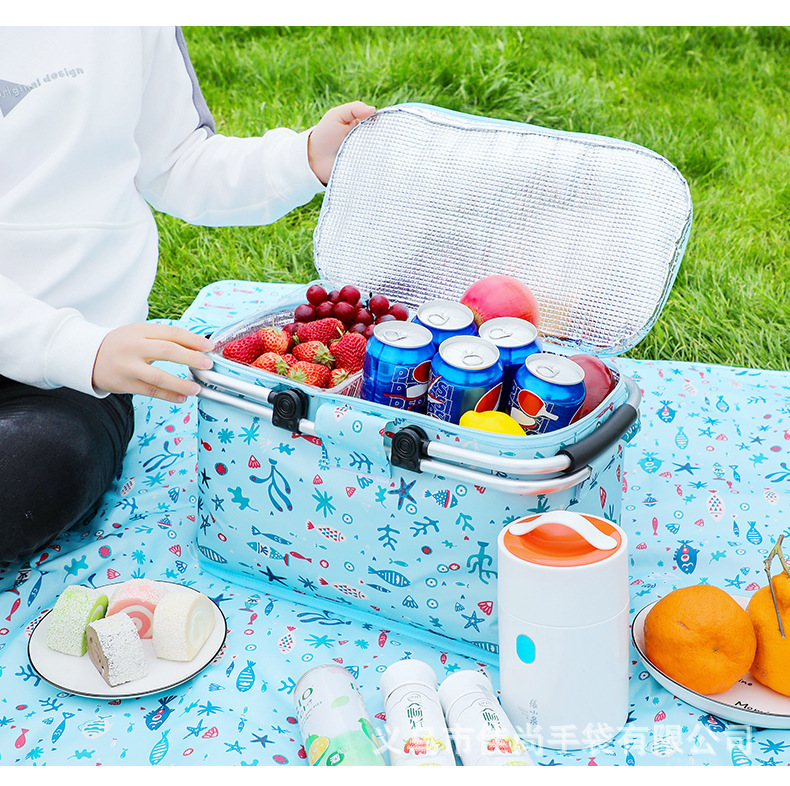 보온 피크닉 바구니 접이식 아이스백 아이스 바구니 야외 보온 보냉 휴대용 수납 바구니