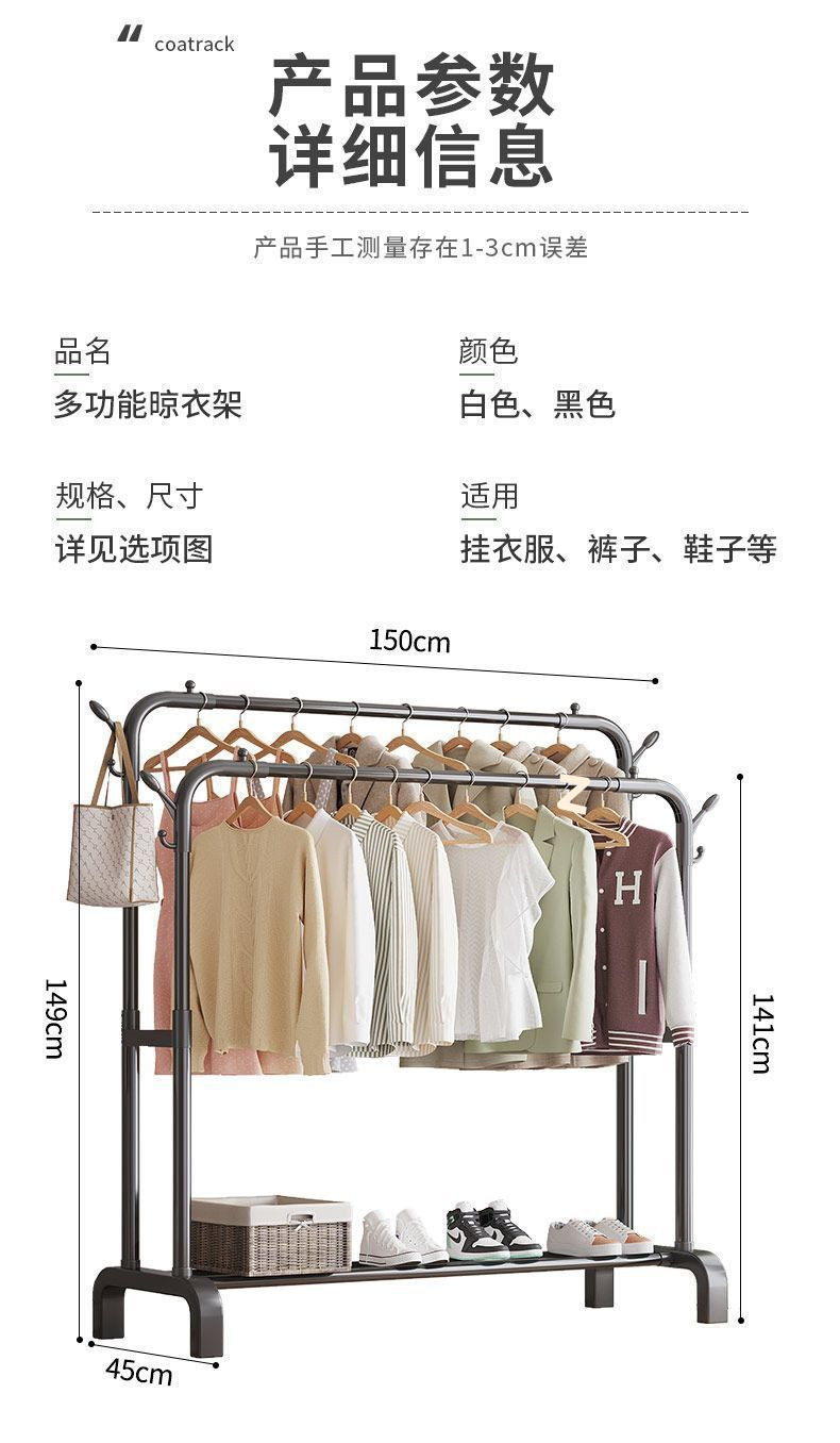간단한 옷걸이 랙, 가정용 침실 옷걸이 랙, 기숙사 실내 발코니 옷걸이 랙, 접이식 옷걸이 레일
