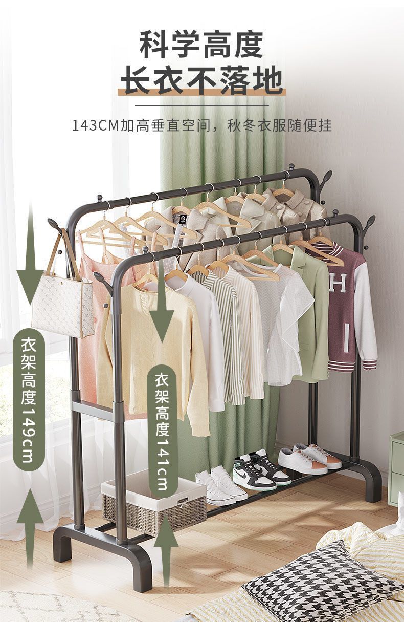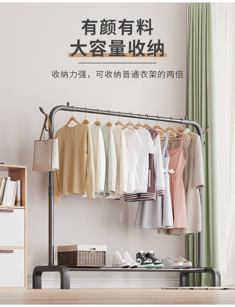 간단한 옷걸이 랙, 가정용 침실 옷걸이 랙, 기숙사 실내 발코니 옷걸이 랙, 접이식 옷걸이 레일스토어 가기