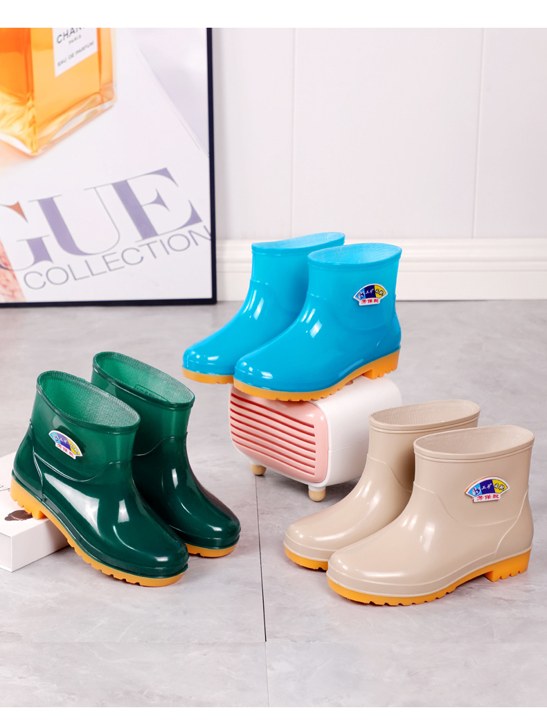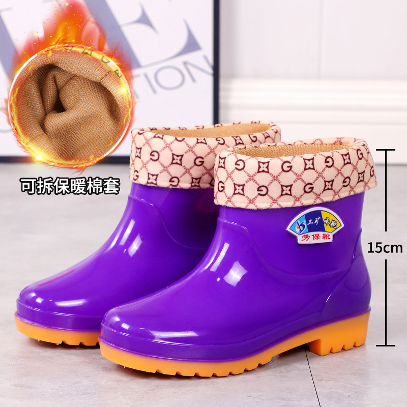 여성용 레인부츠, 벨벳, 두꺼운 방수 및 미끄럼 방지 여성용 레인부츠, 짧은 튜브 방수, 패셔너블하고 트렌디한 작업용 고무신스토어 가기