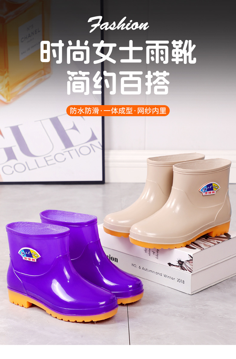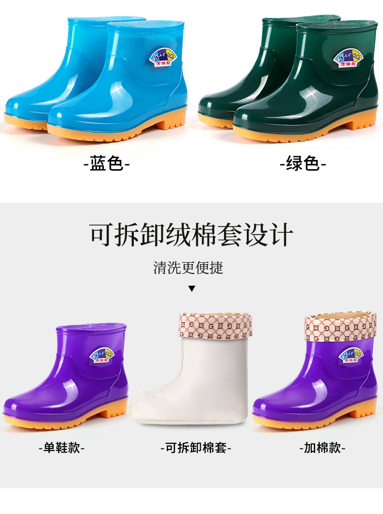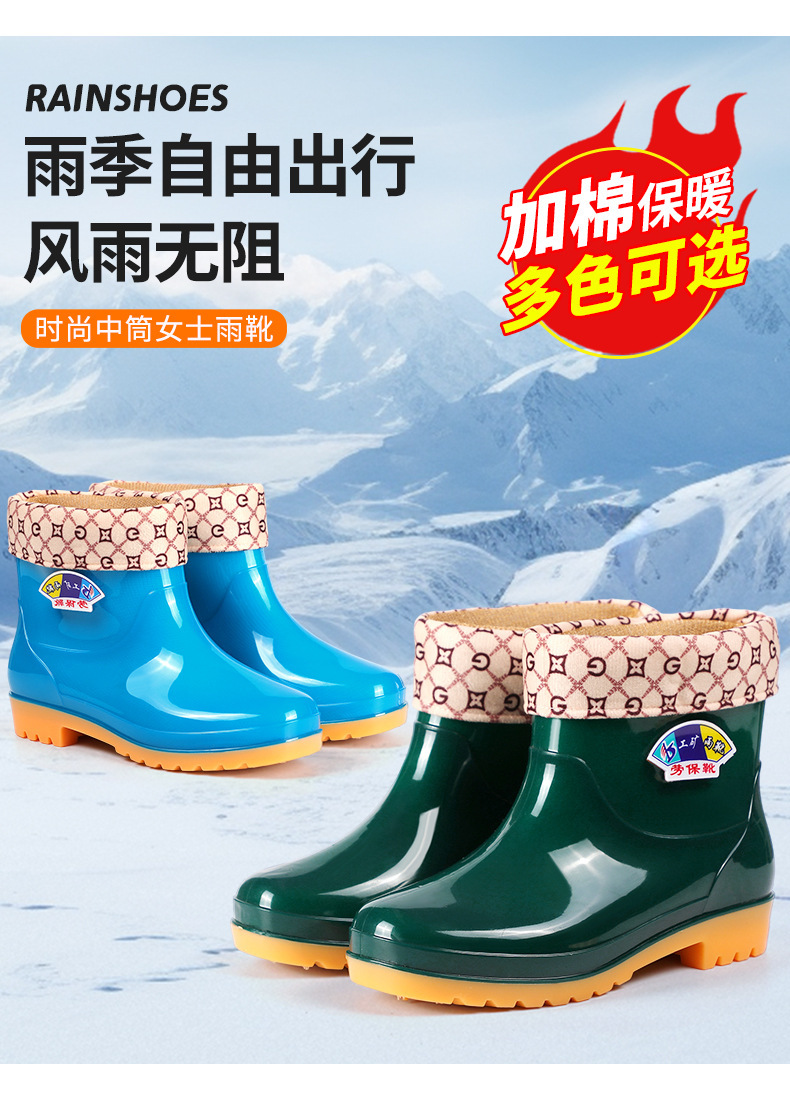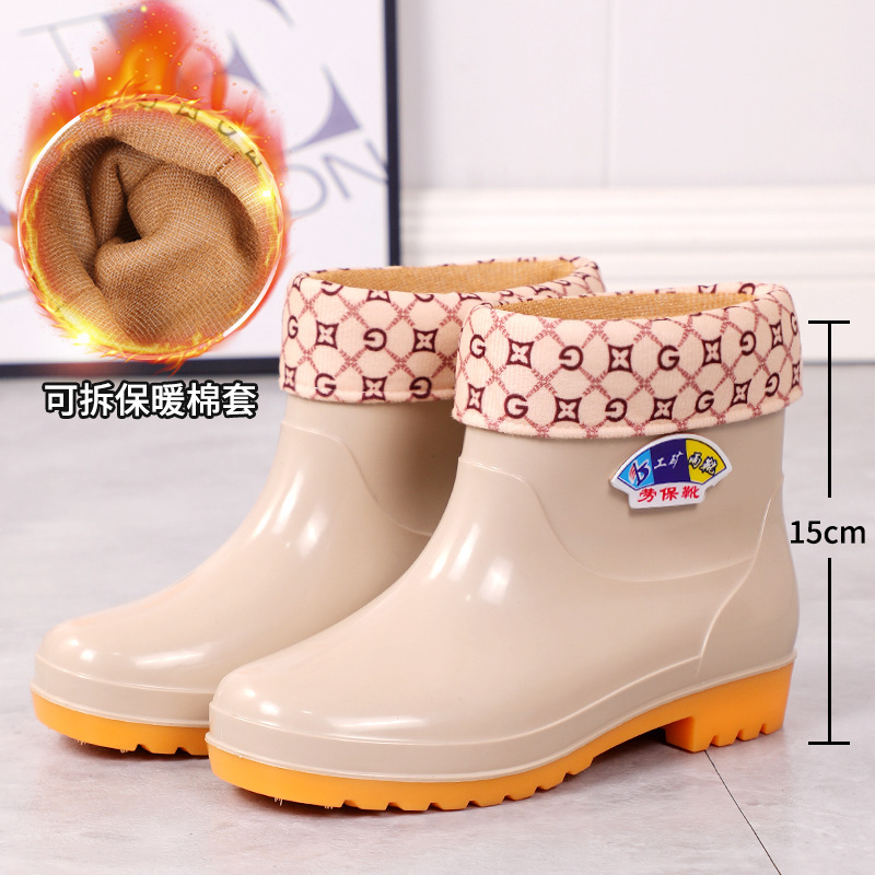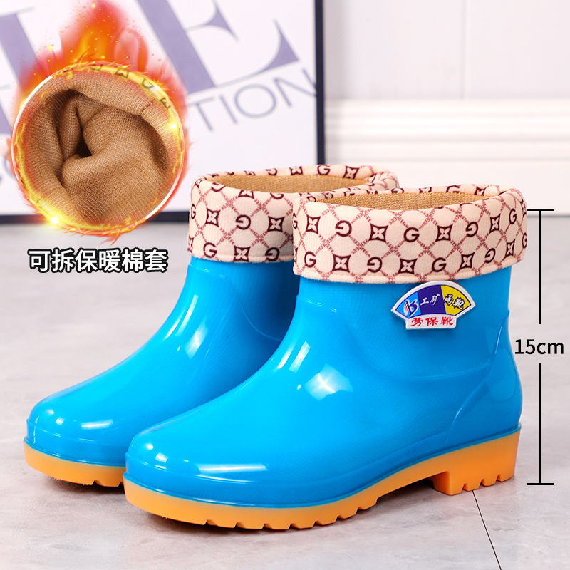 여성용 레인부츠, 벨벳, 두꺼운 방수 및 미끄럼 방지 여성용 레인부츠, 짧은 튜브 방수, 패셔너블하고 트렌디한 작업용 고무신