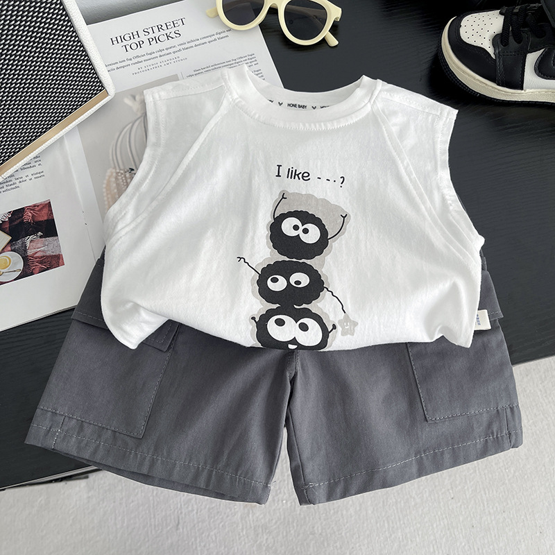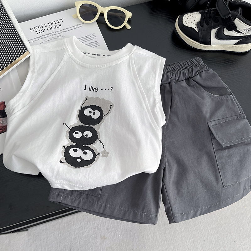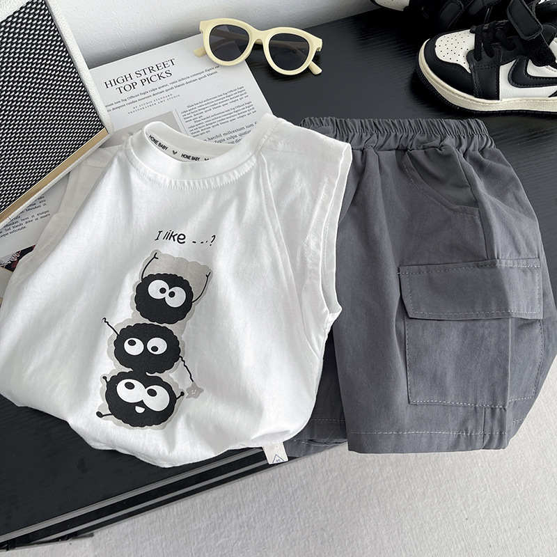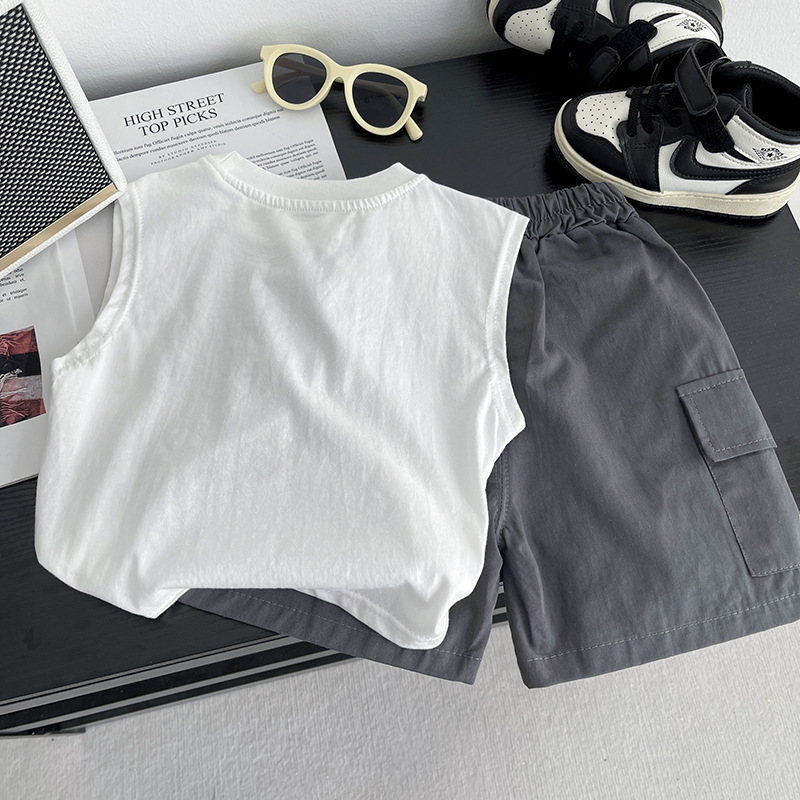 소년 여름 정장 어린이 2025 새로운 한국 스타일 잘 생긴 서양식 티셔츠 아기 소녀 유행 브랜드 캐주얼 투피스 세트 3스토어 가기