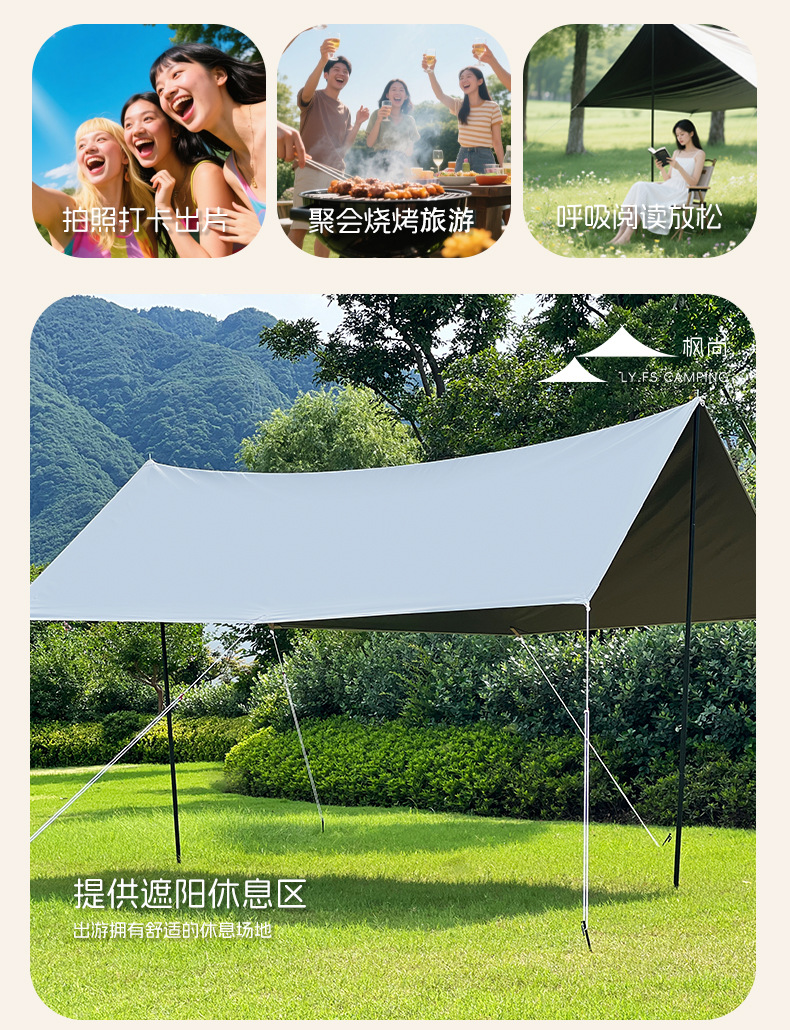 420D 티타늄 검정색 야외 육각형 사각형 캐노피 텐트 태양 보호 및 비 보호 휴대용 양산 캠핑 피크닉 휴대용