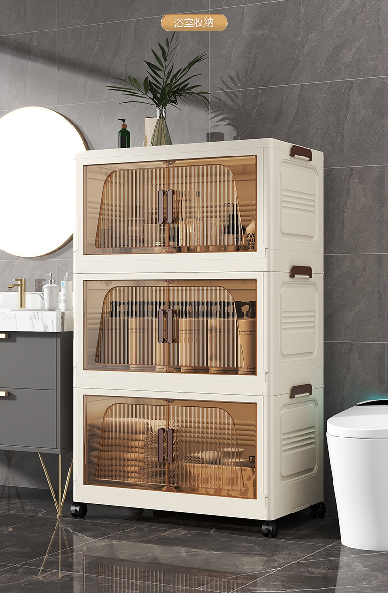 국경 간 45cm 접이식 설치가 필요없는 보관 캐비닛 홈 스토리지 옷장 거실 잡다한 스낵 플라스틱 보관 선반스토어 가기