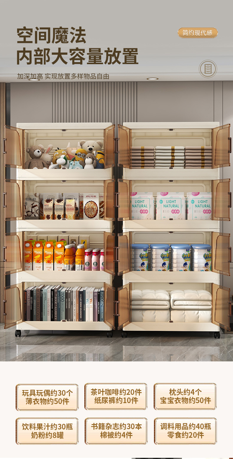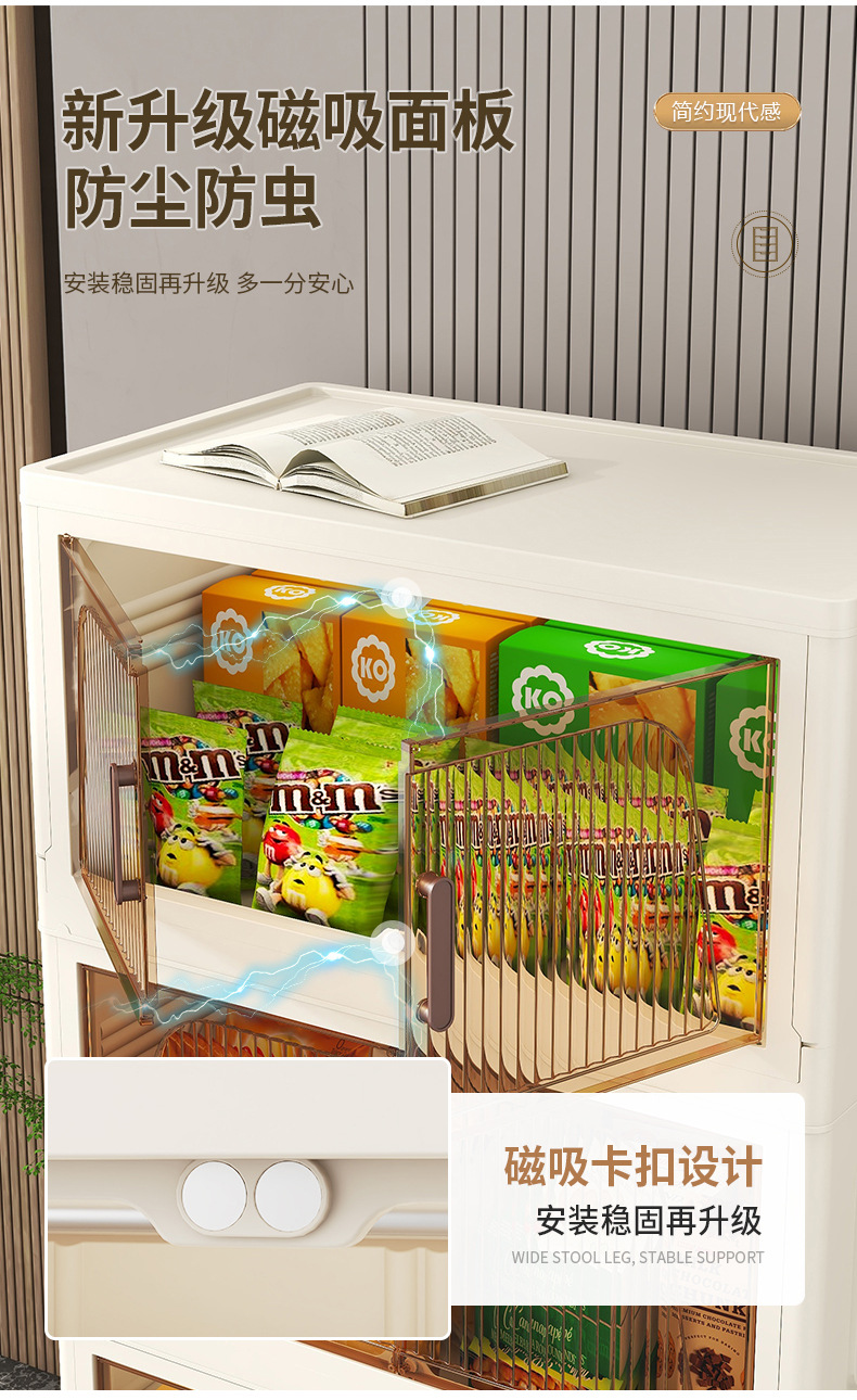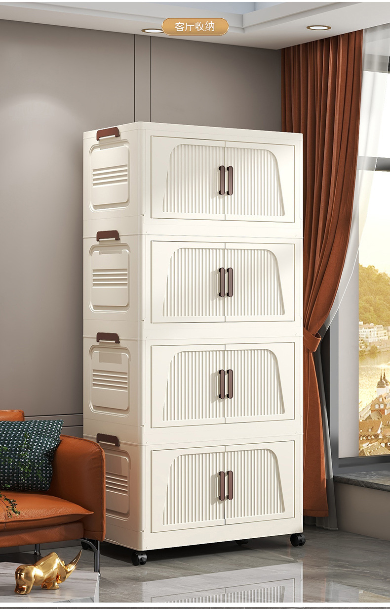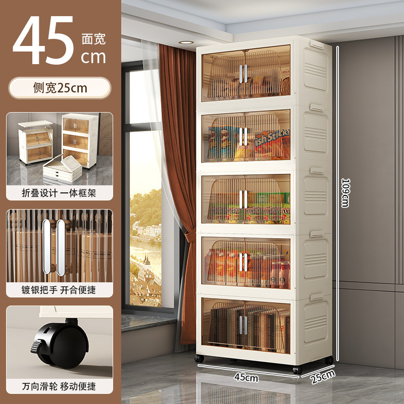 국경 간 45cm 접이식 설치가 필요없는 보관 캐비닛 홈 스토리지 옷장 거실 잡다한 스낵 플라스틱 보관 선반