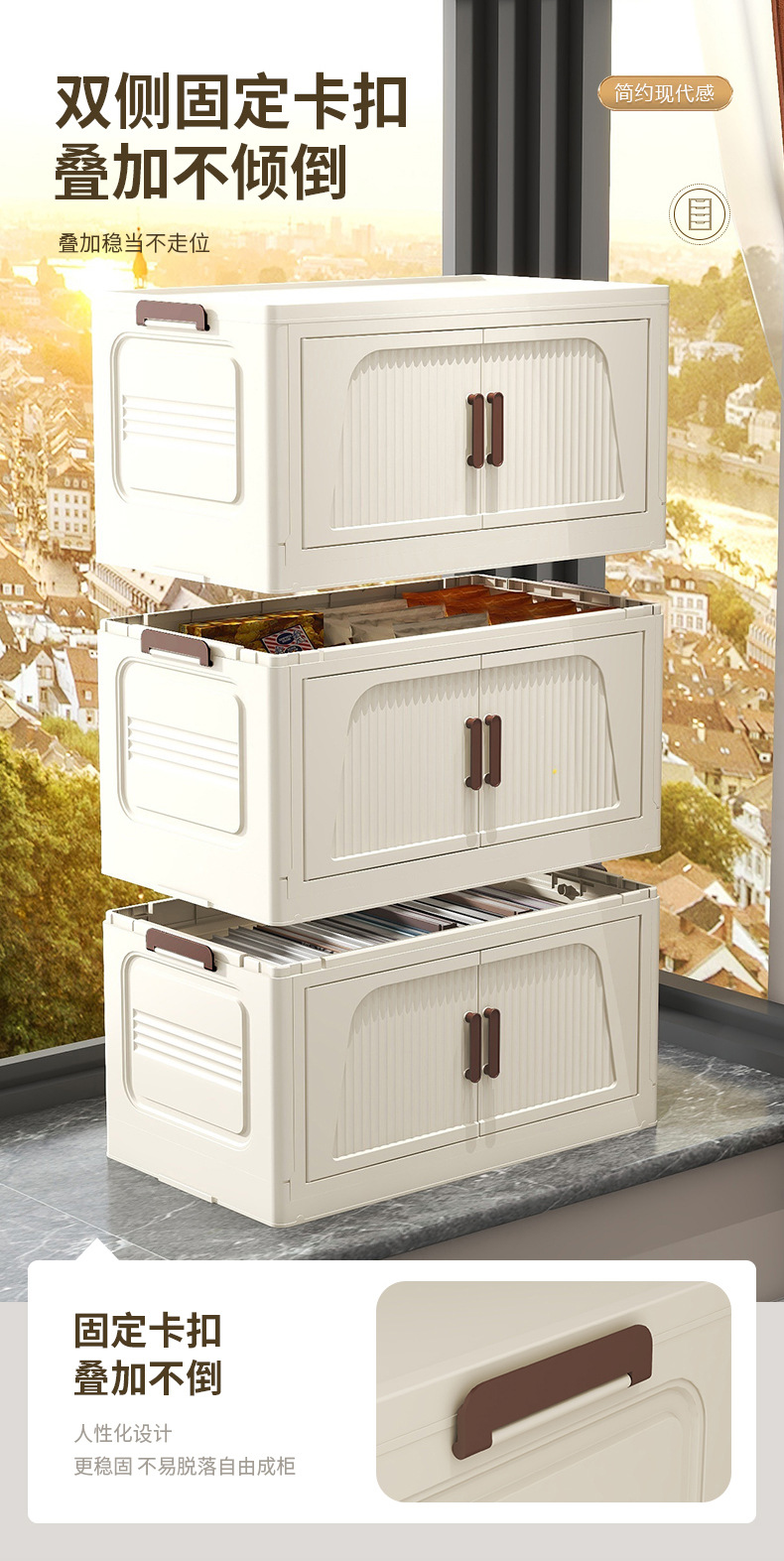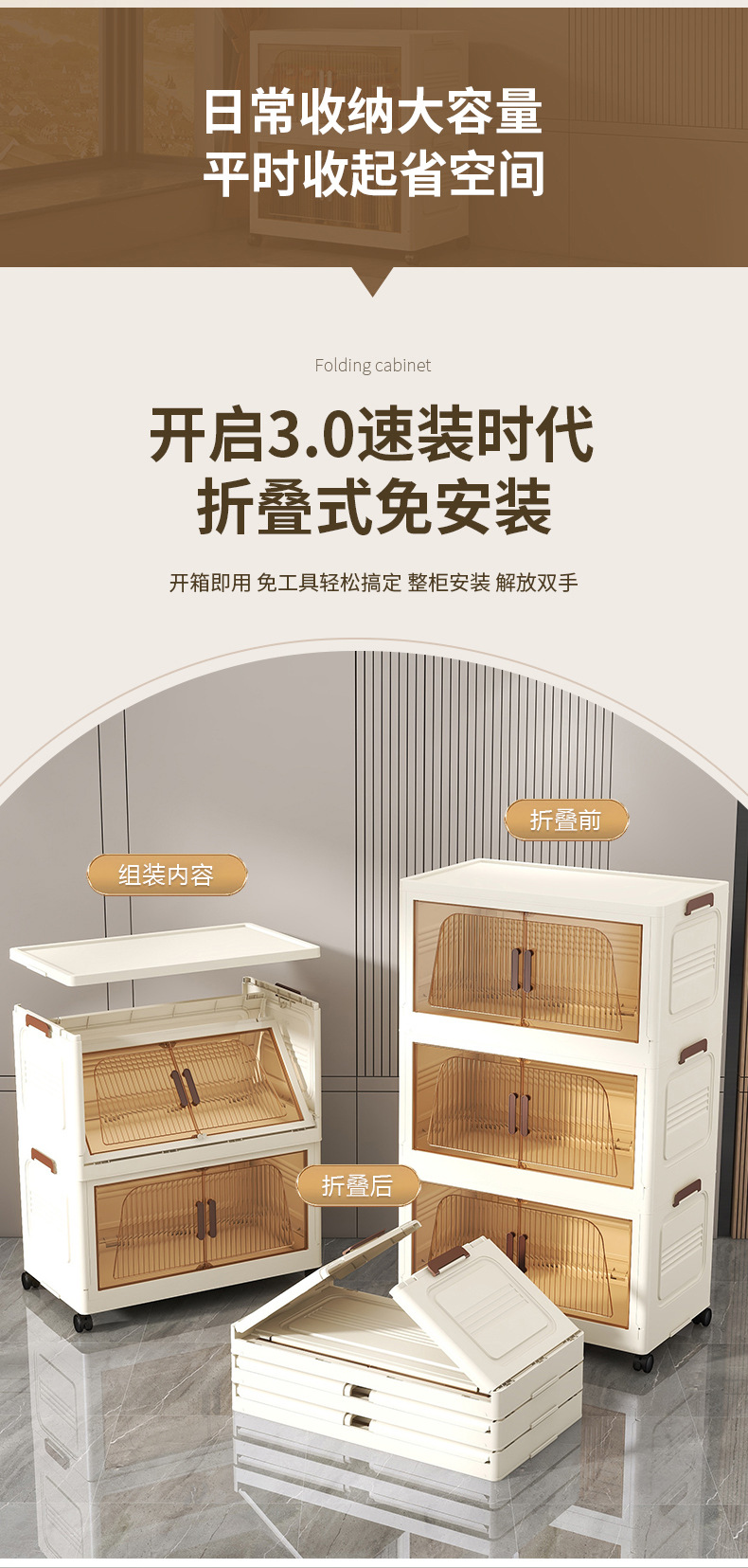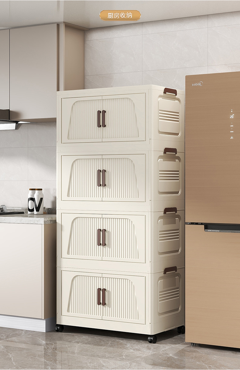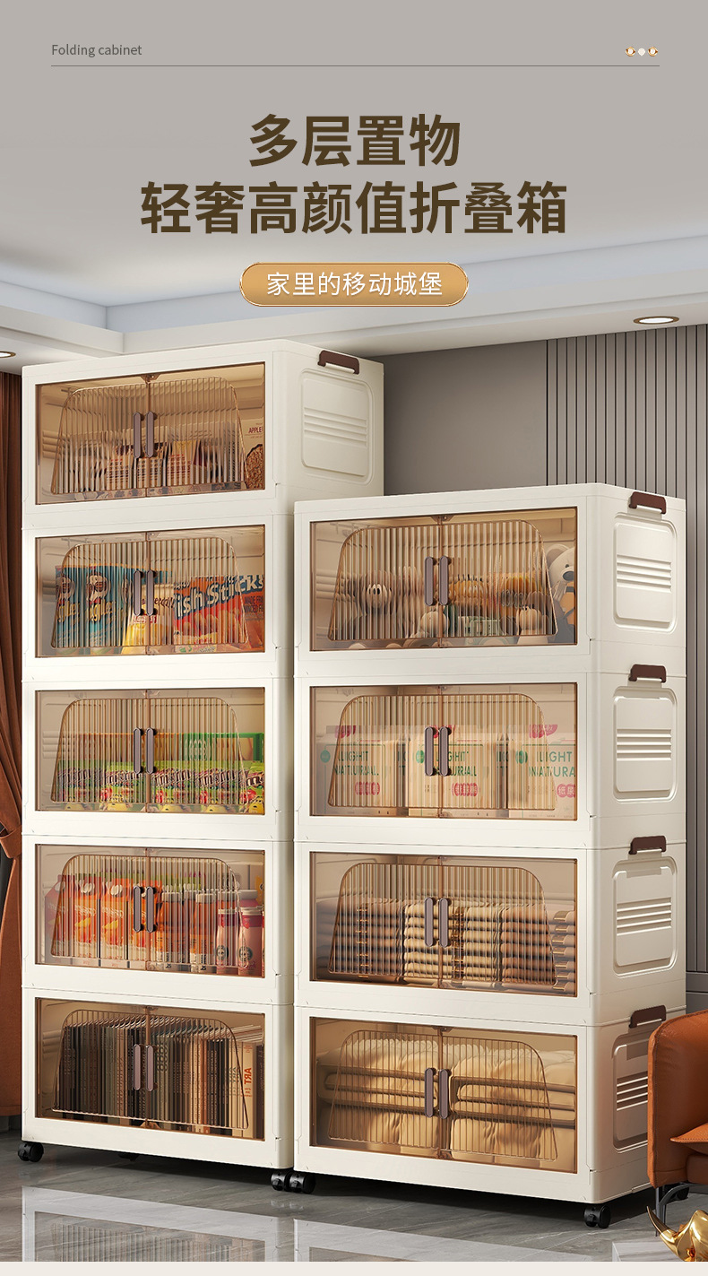 국경 간 45cm 접이식 설치가 필요없는 보관 캐비닛 홈 스토리지 옷장 거실 잡다한 스낵 플라스틱 보관 선반