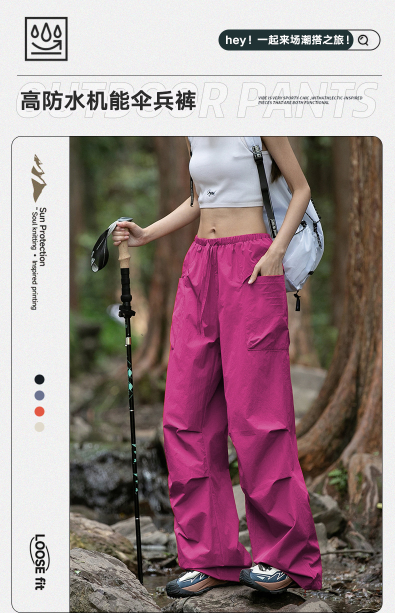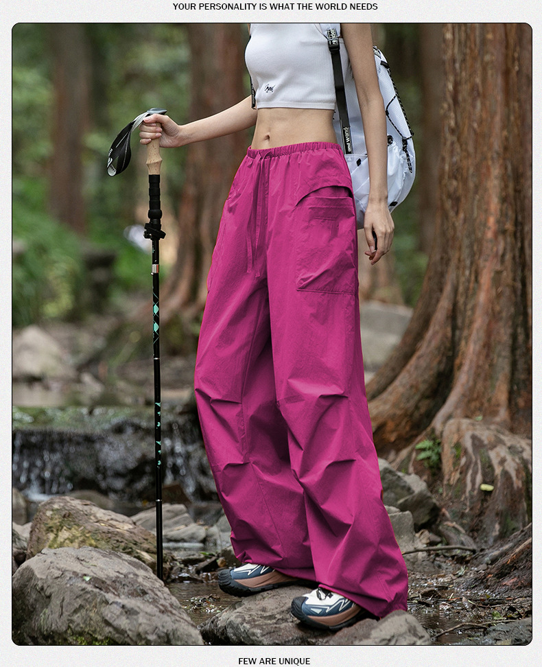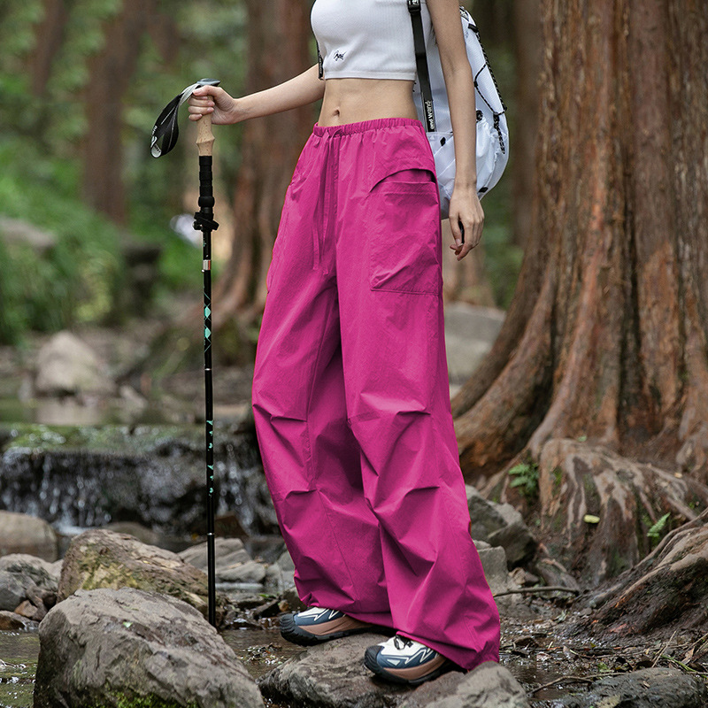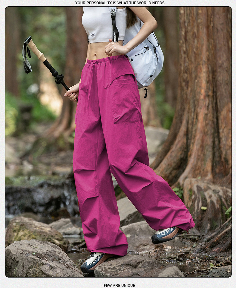 여름 야외 스포츠 자외선 차단제 낙하산 하이킹 및 등산 바지 아이스 실크 얇은 작업복을위한 여성용 로즈 퍼플 속건성 바지스토어 가기