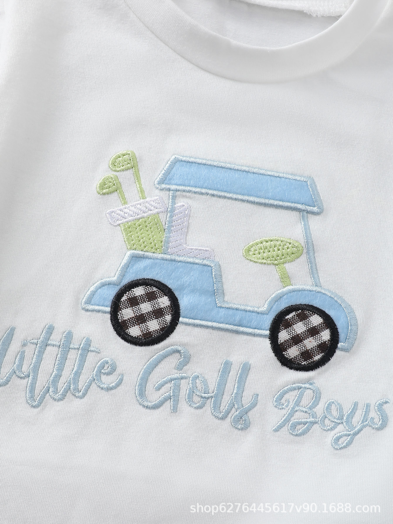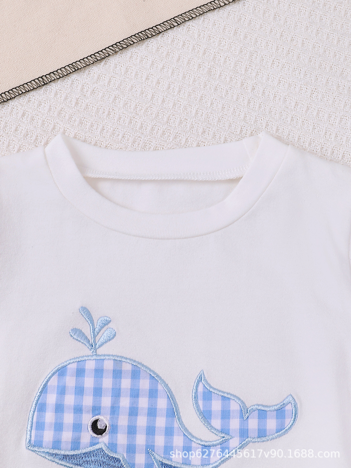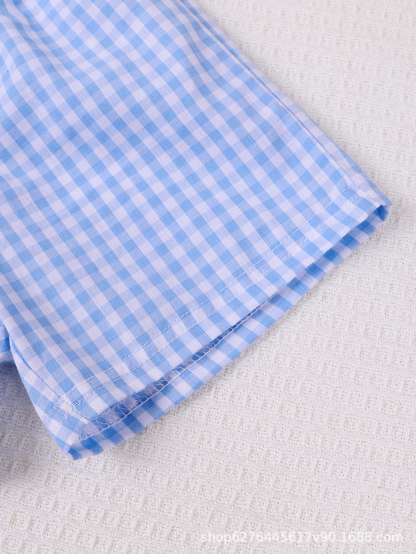 2025 여름 얇은 아기 자수 패턴 티셔츠+격자무늬 반바지 아기 투피스 세트 아동복 어린이 의류스토어 가기
