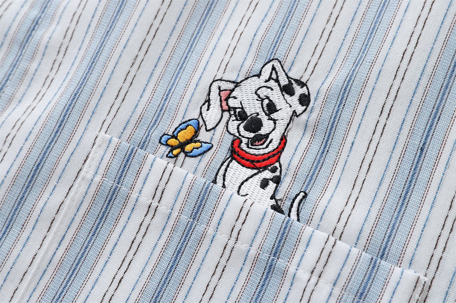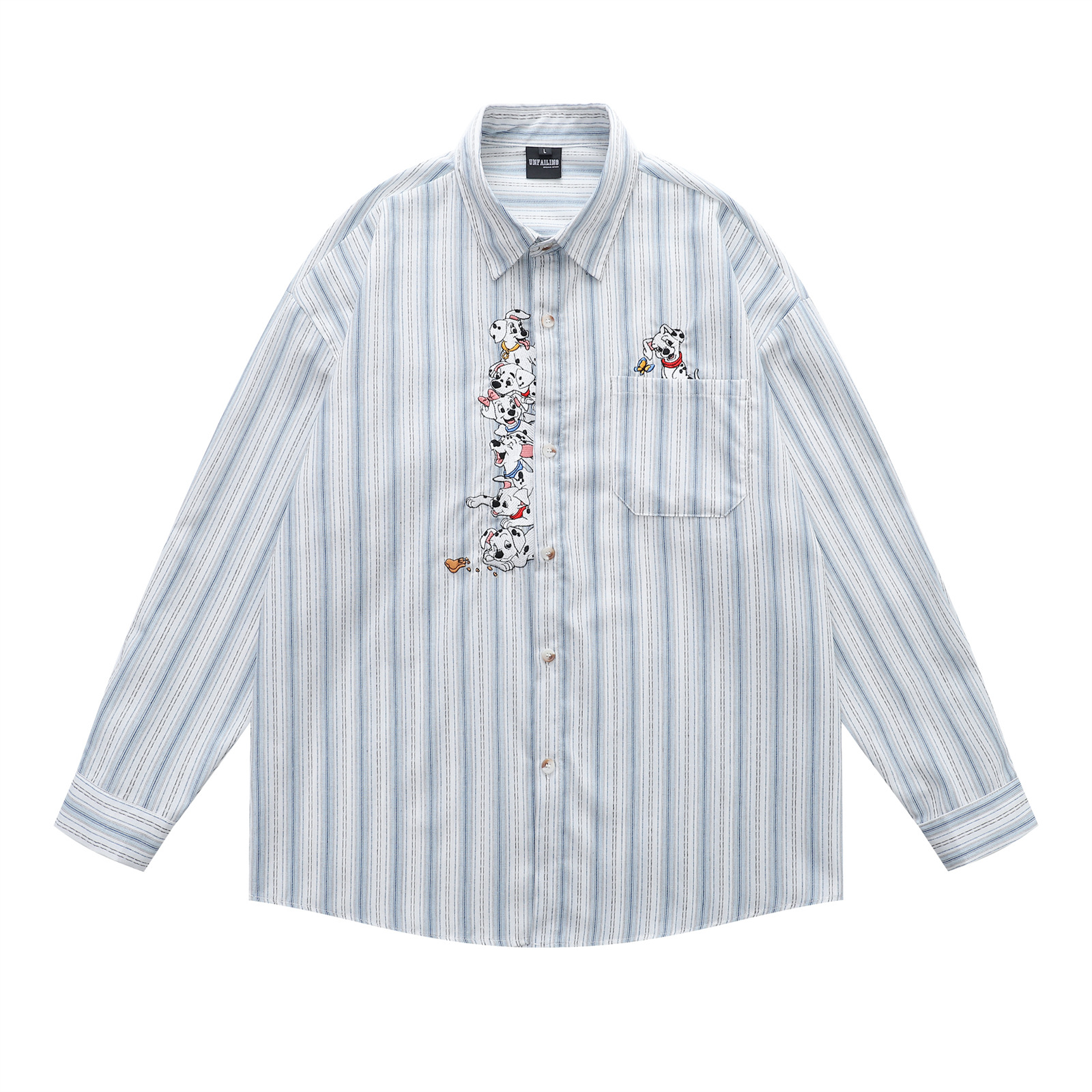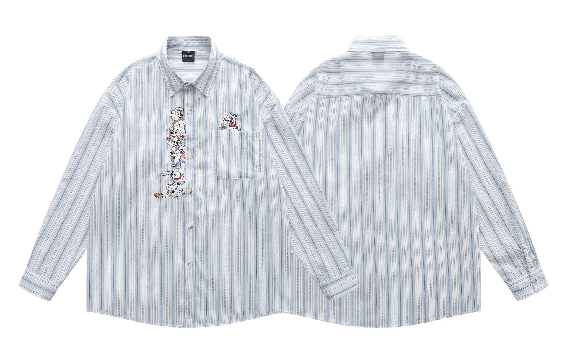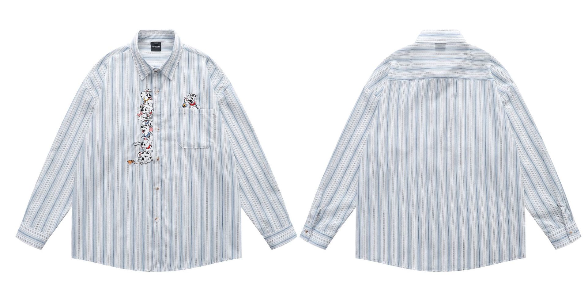 미국 복고풍 재미있는 강아지 자수 스트라이프 긴팔 셔츠 남성 가을 다목적 루즈 캐주얼 커플 셔츠