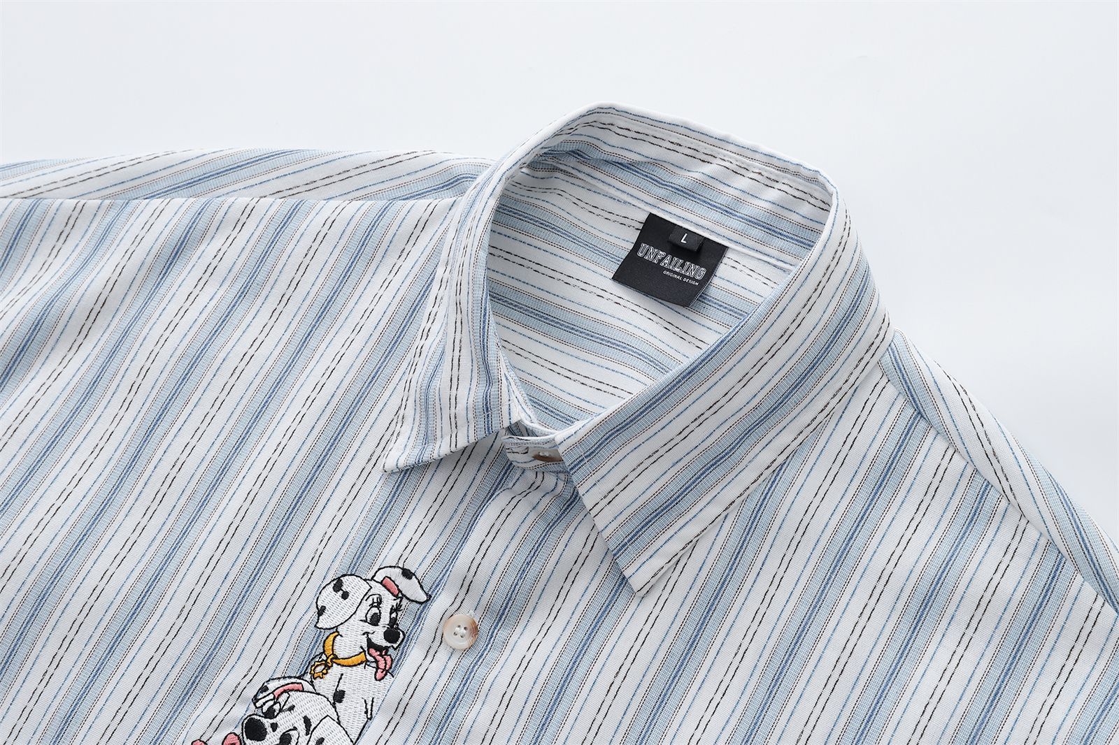 미국 복고풍 재미있는 강아지 자수 스트라이프 긴팔 셔츠 남성 가을 다목적 루즈 캐주얼 커플 셔츠스토어 가기