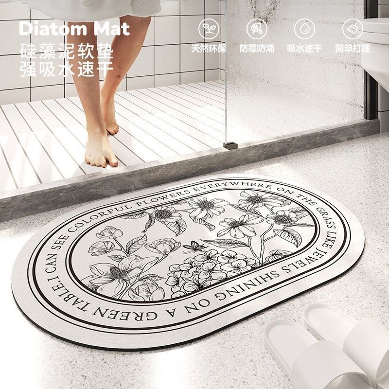 미국식 꽃무늬 욕실 규조토 진흙 바닥 매트, 흡수성 및 절단 가능한 입구 문 바닥 매트, 가정용 간편한 관리 미끄럼 방지 매트스토어 가기