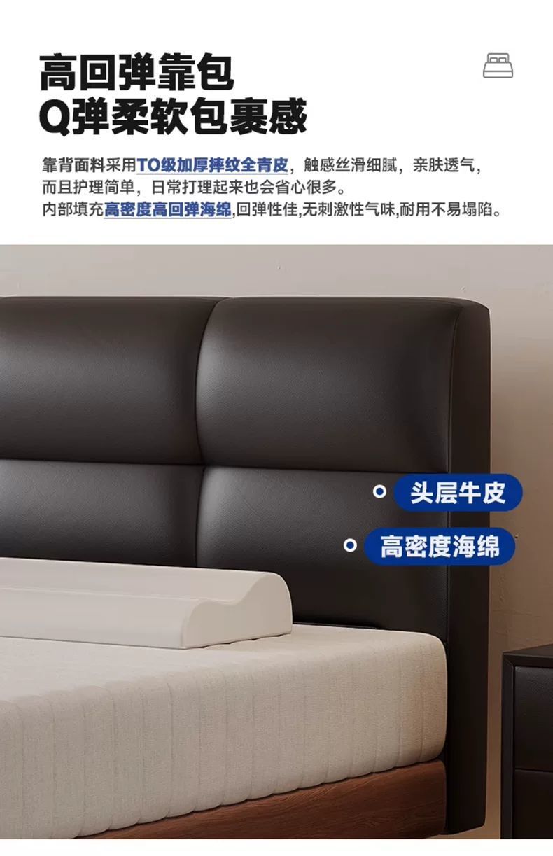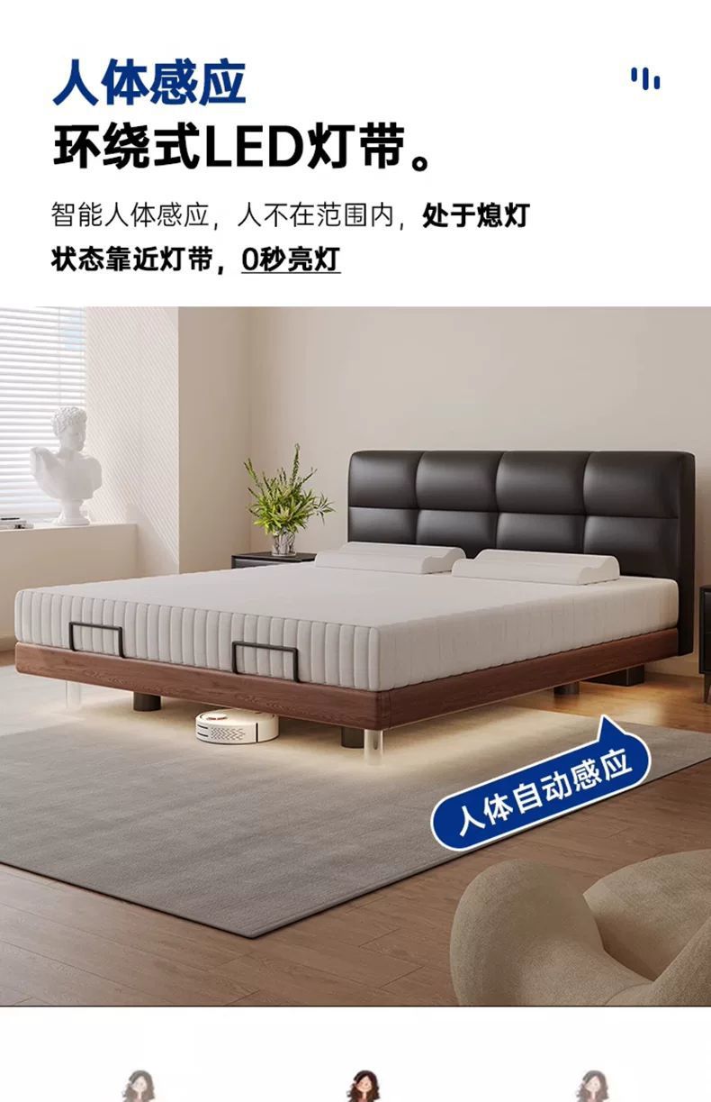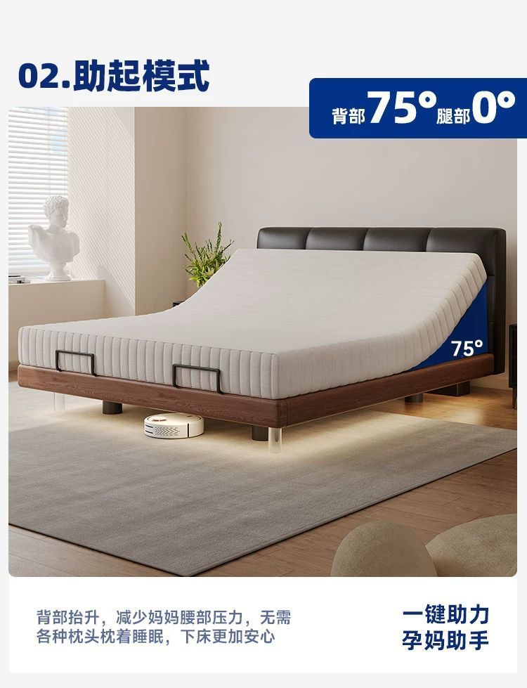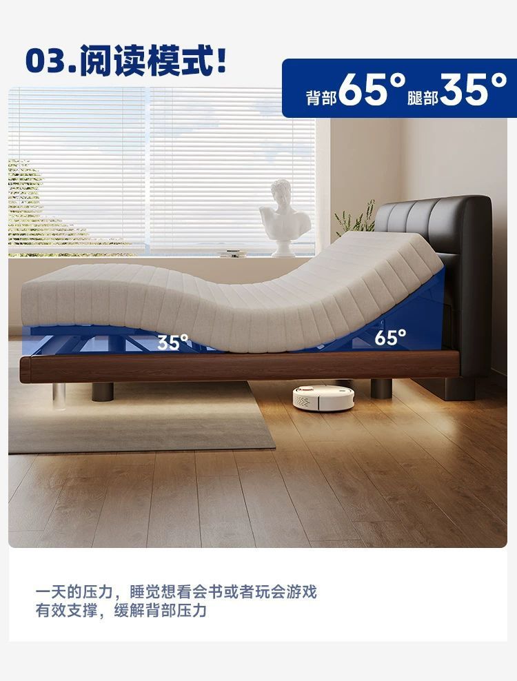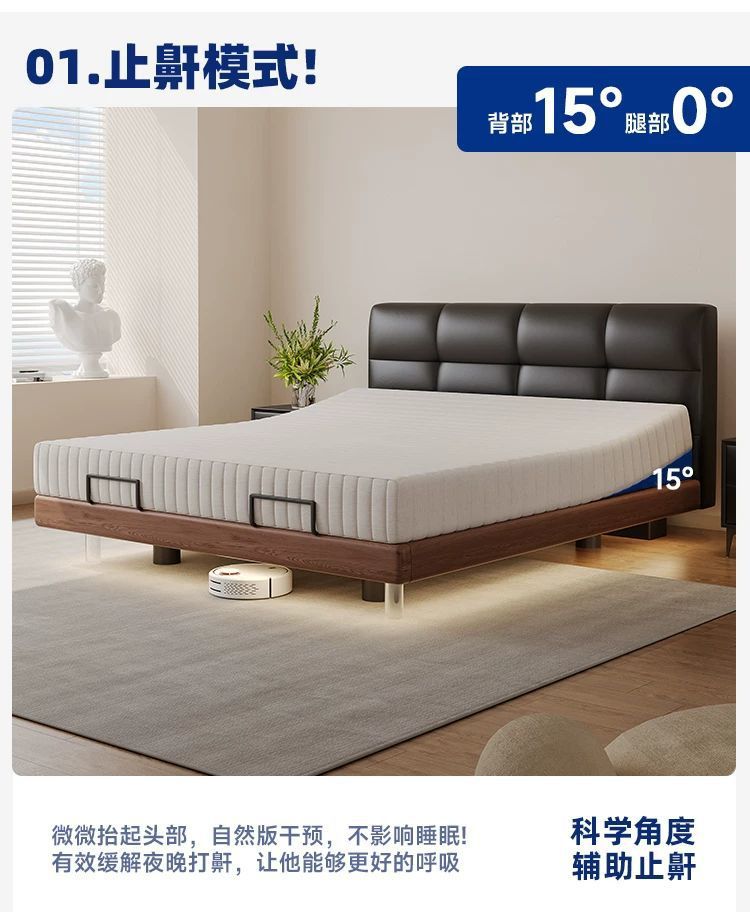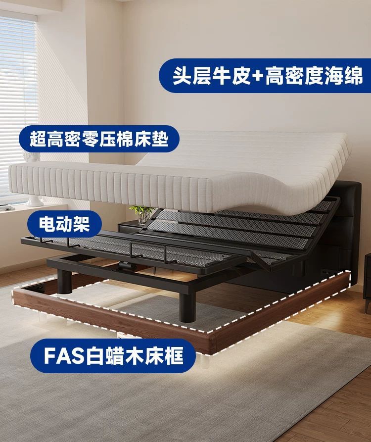• 물푸레나무 소가죽 침대 + OKIN 듀얼 모터 + 무압력 스펀지 쿠션