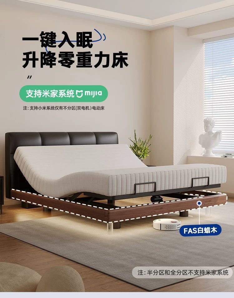 중국 전통 스타일 미지아 자동 스마트 침대 고급 전동 침대 더블 침대 레트로 스타일 레더 화이트 애쉬 우드 침대스토어 가기