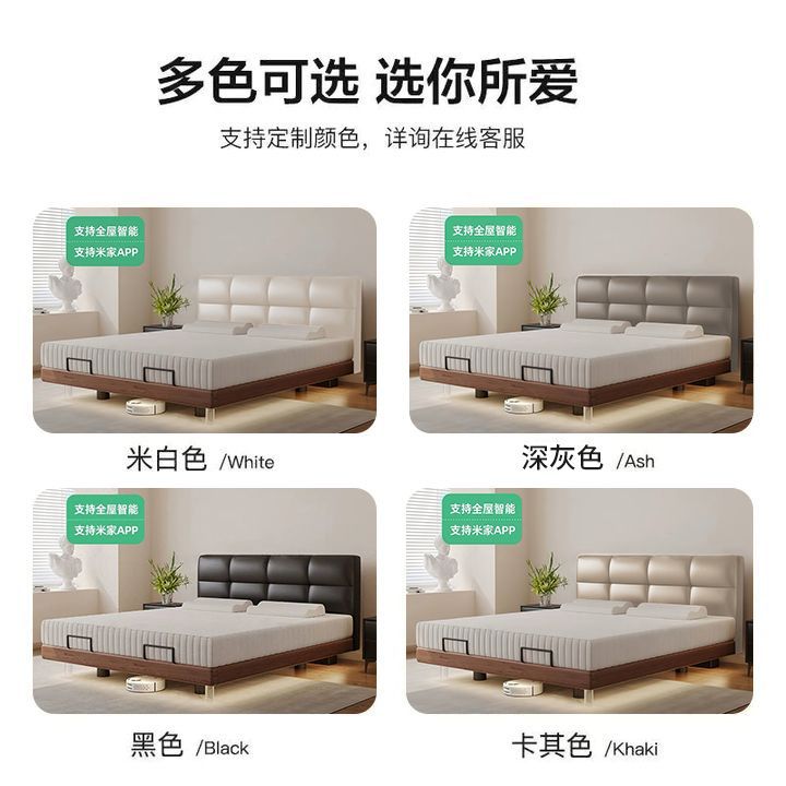 중국 전통 스타일 미지아 자동 스마트 침대 고급 전동 침대 더블 침대 레트로 스타일 레더 화이트 애쉬 우드 침대