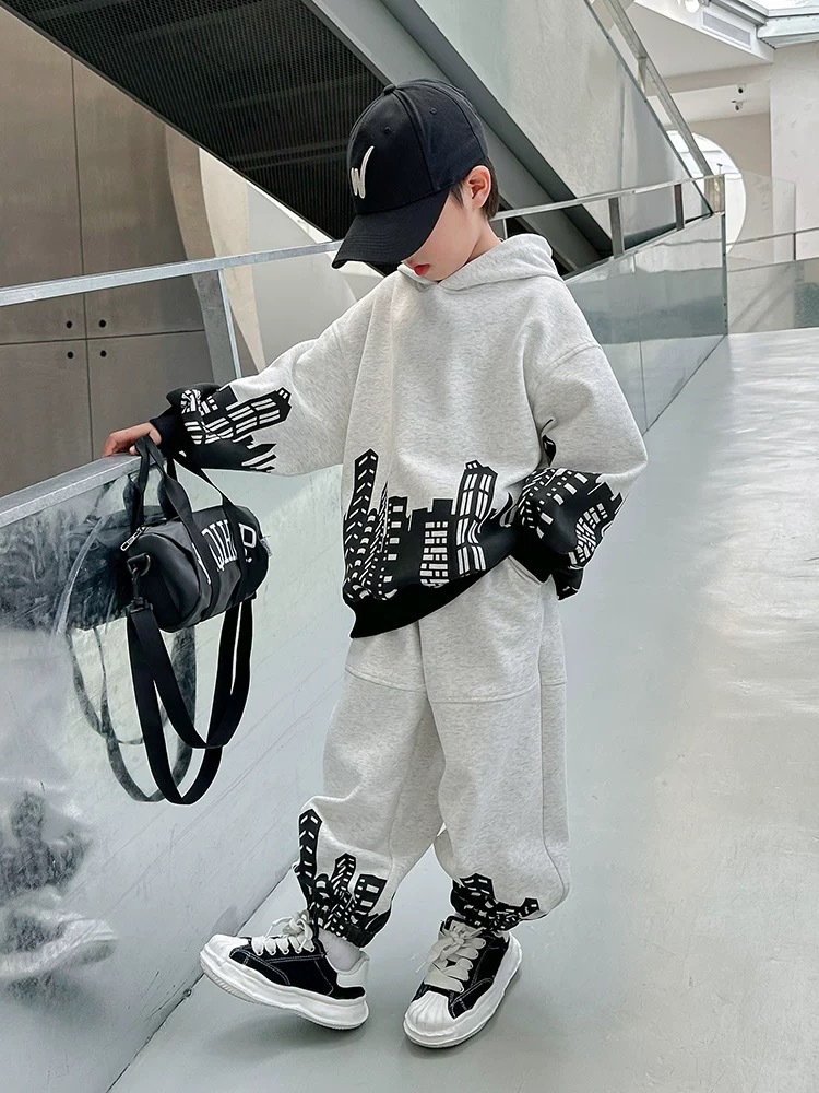 2025년 신작 남아용 봄, 가을 스포츠 스웨트셔츠 및 스웨트팬츠 세트, 큰 남아용 가을 패션 투피스 세트스토어 가기