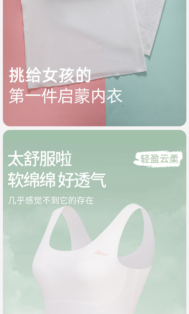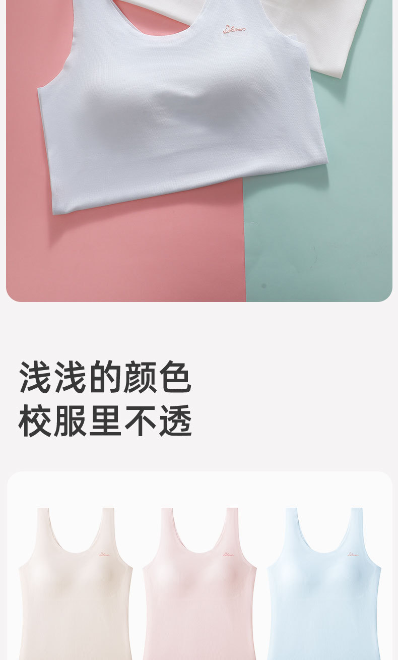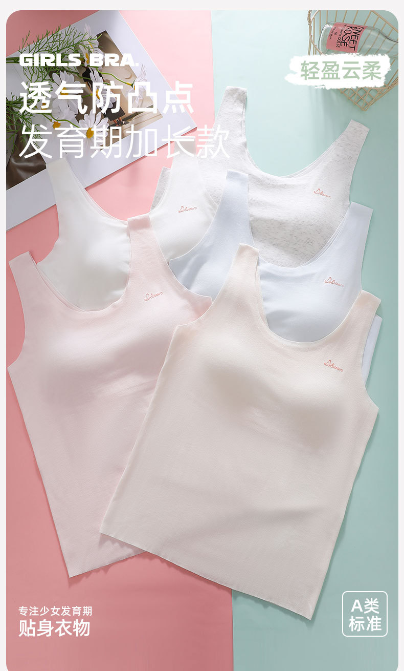 Omeifen 발달 기간 7-16 세 소녀 브래지어 긴 조끼 원활한 스포츠 고정 컵 학생 소녀 속옷스토어 가기