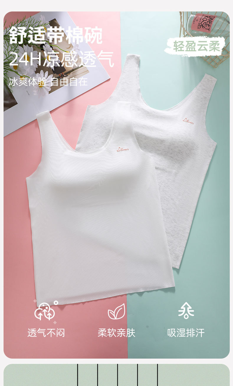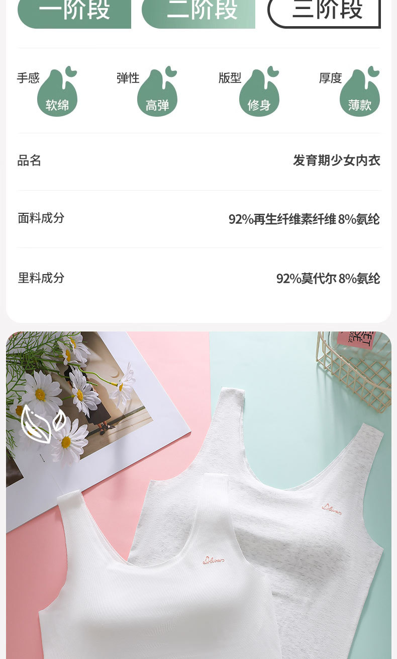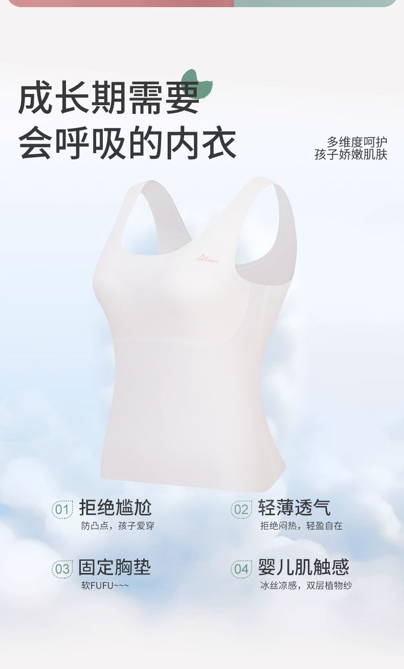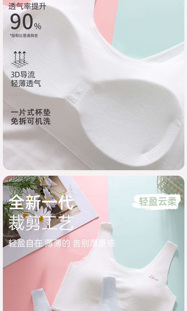 Omeifen 발달 기간 7-16 세 소녀 브래지어 긴 조끼 원활한 스포츠 고정 컵 학생 소녀 속옷스토어 가기