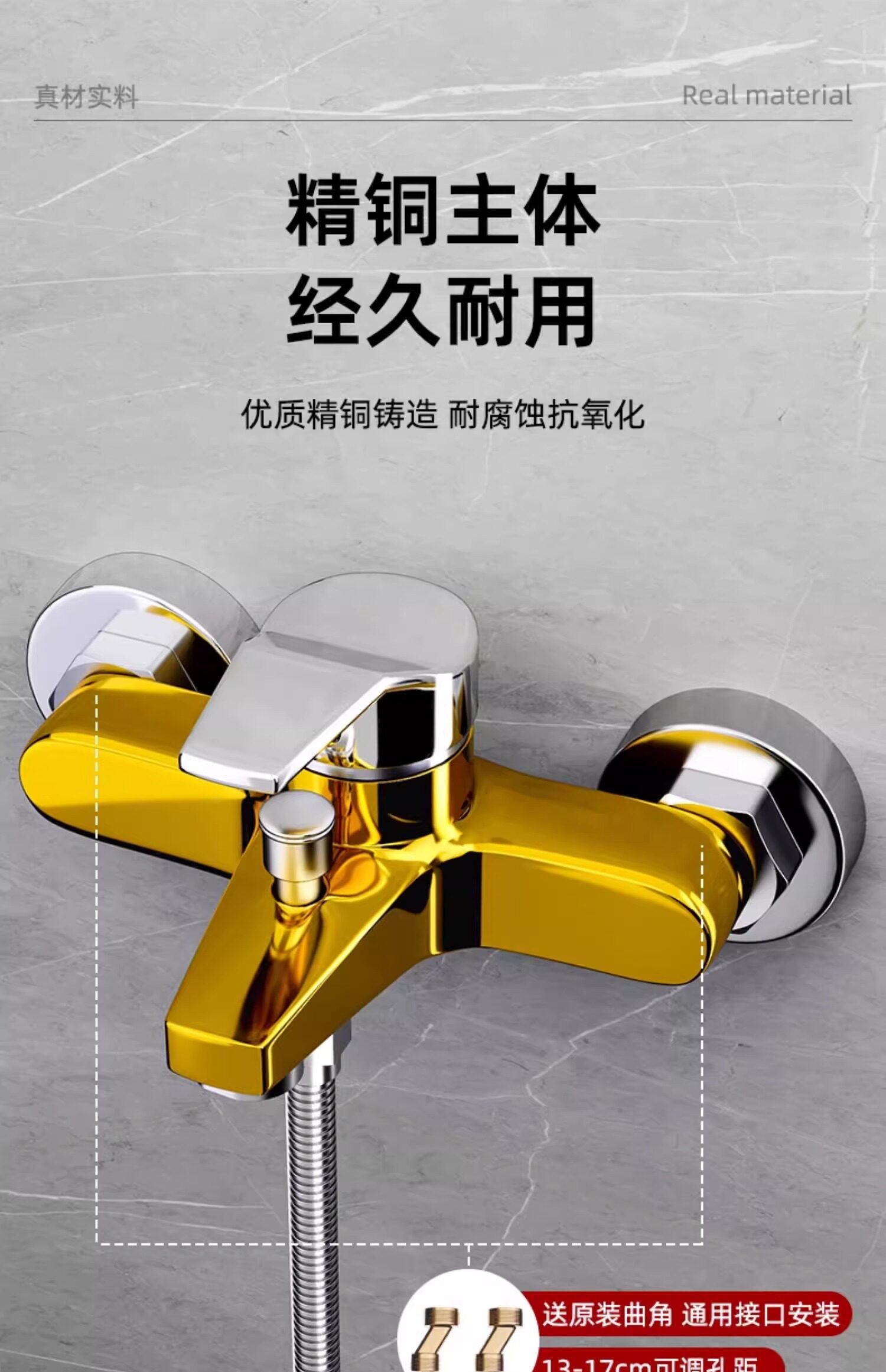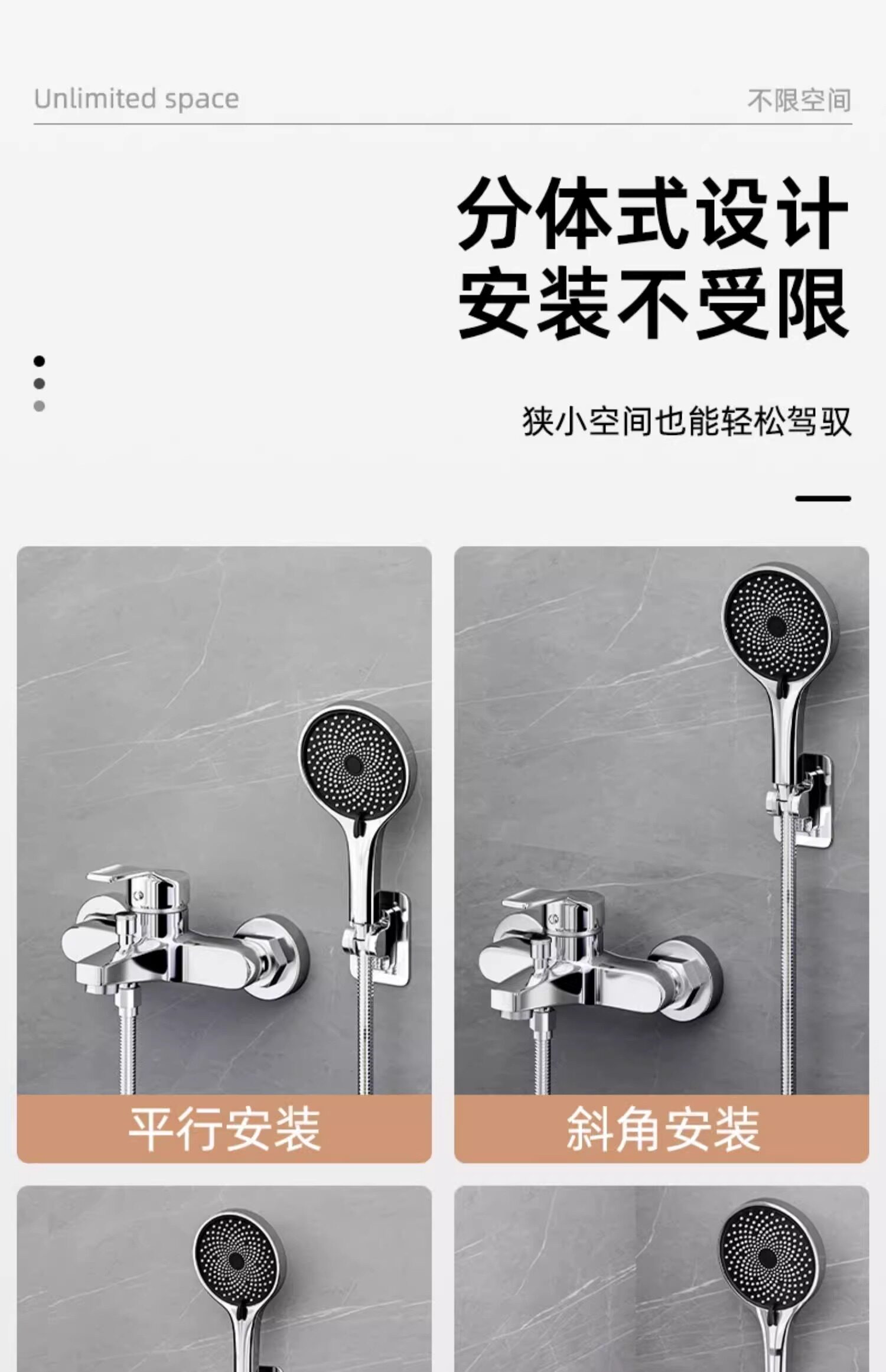 • ★ 구리 스탠다드 모델 [실버 세트 4] 샤워수전 + 대형 패널 사각 샤워기 + 샤워 브래킷 + 호스.