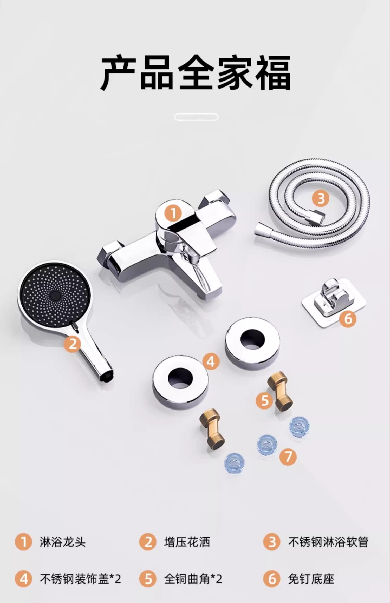 • ★ 스탠다드 모델 [실버세트1] 샤워수전 + 304 스테인리스 샤워기 + 샤워홀더 + 호스