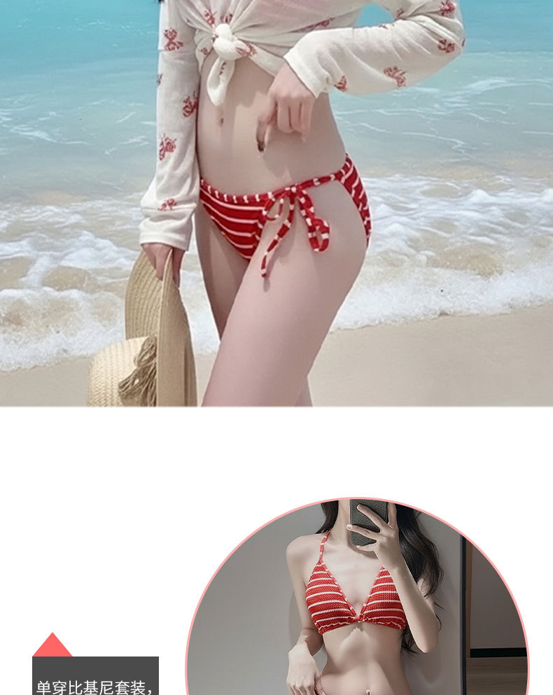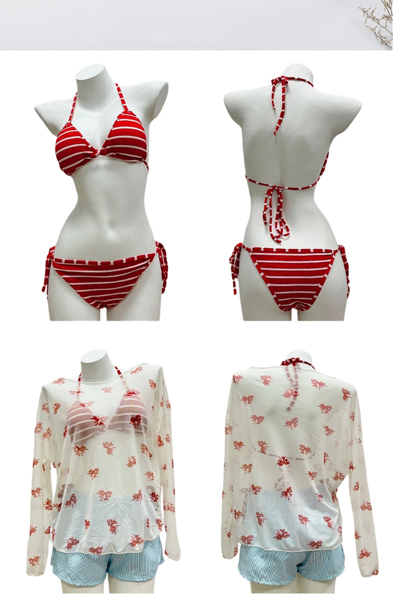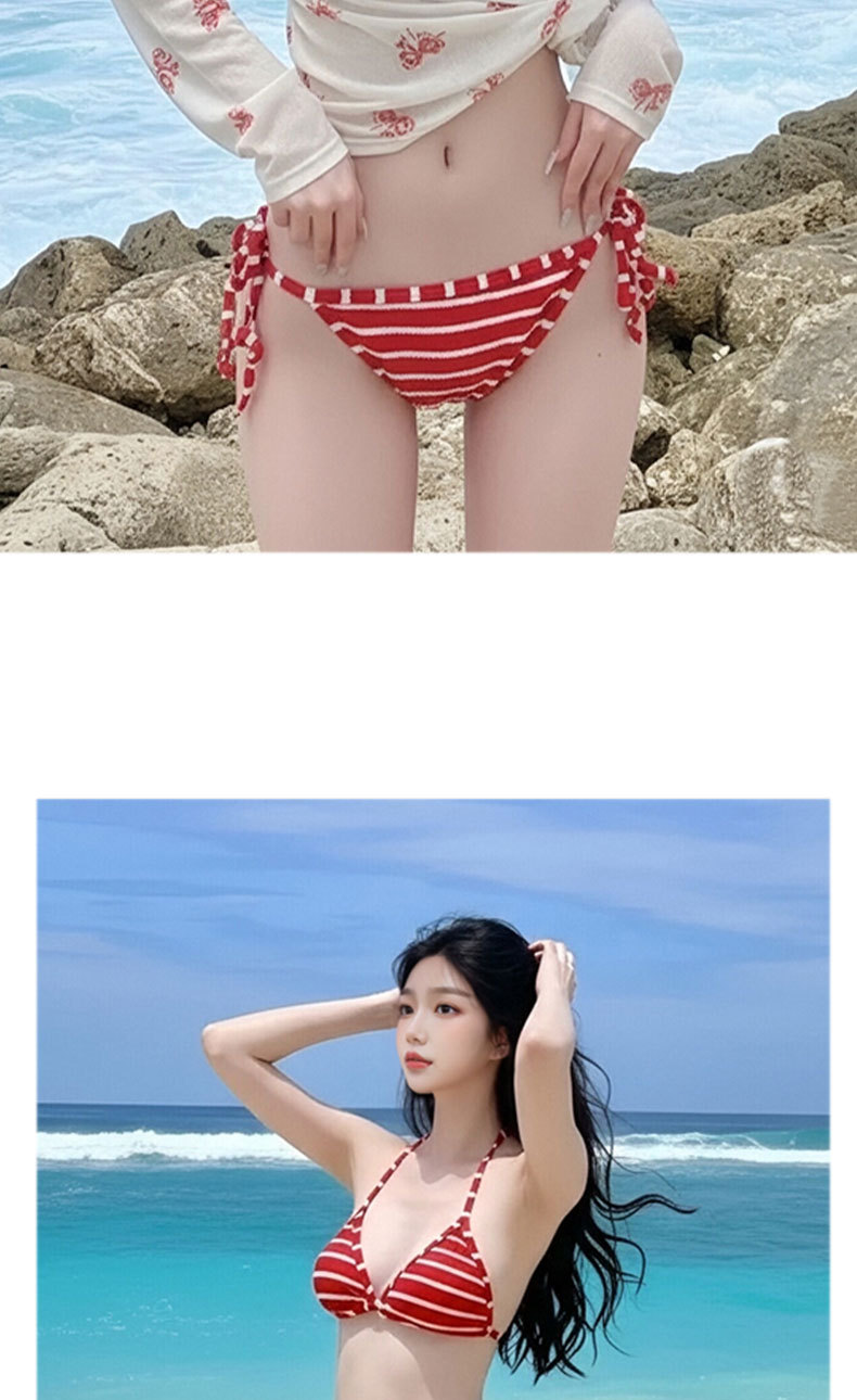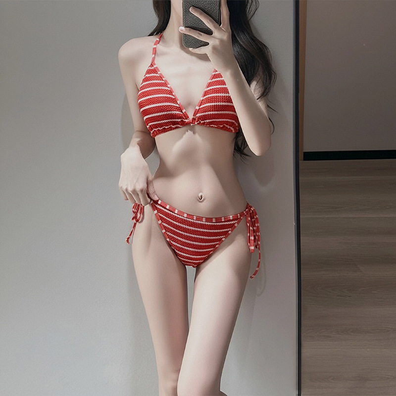 여성용 수영복 2025 새로운 빨간색 줄무늬 스플릿 비키니 3 피스 세트 작은 가슴 푸시 업 섹시한 소녀 핫 소녀 수영복스토어 가기