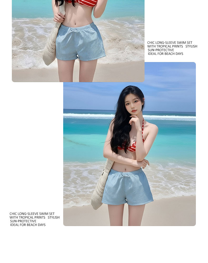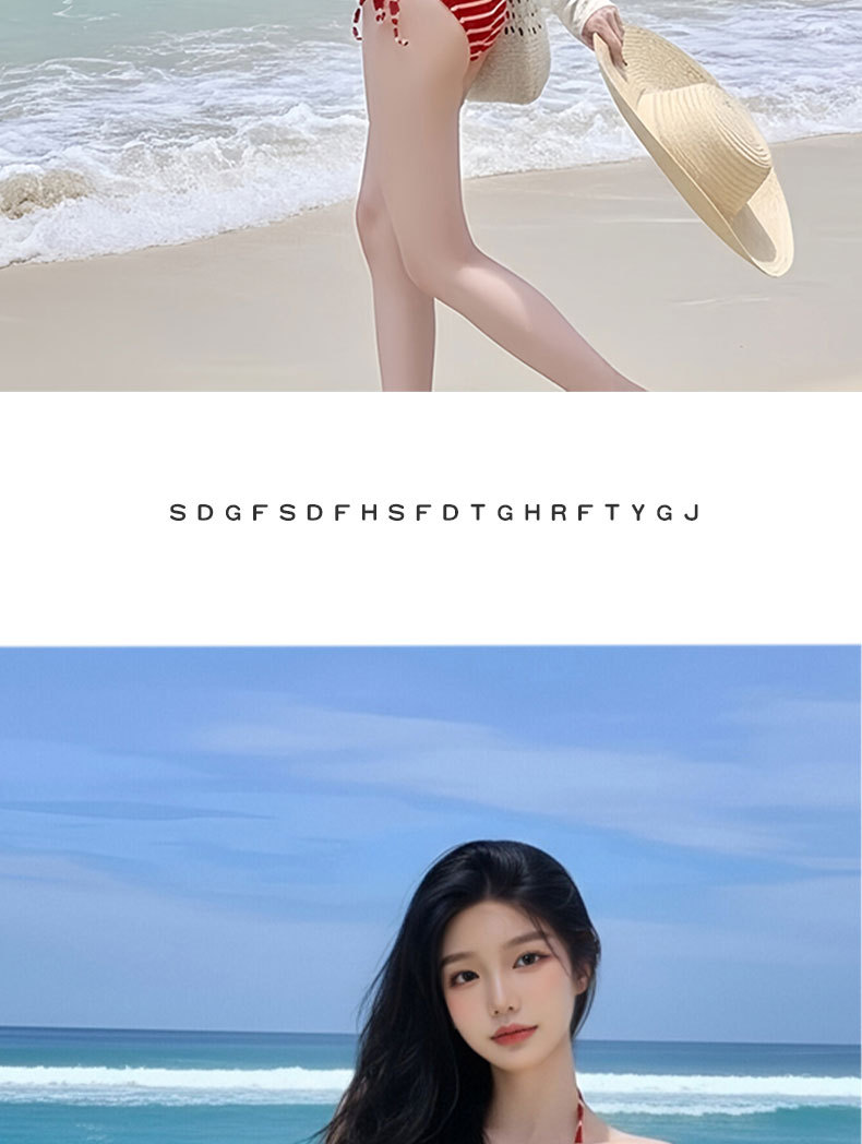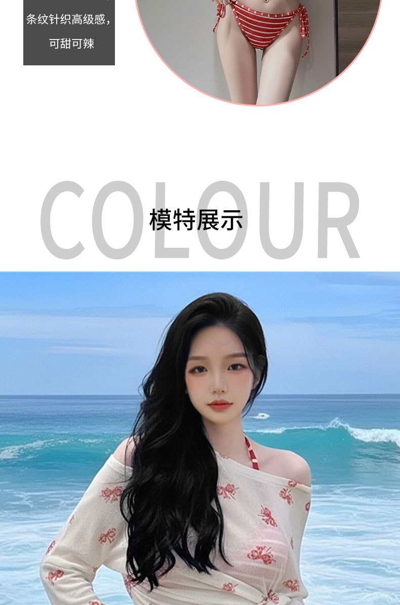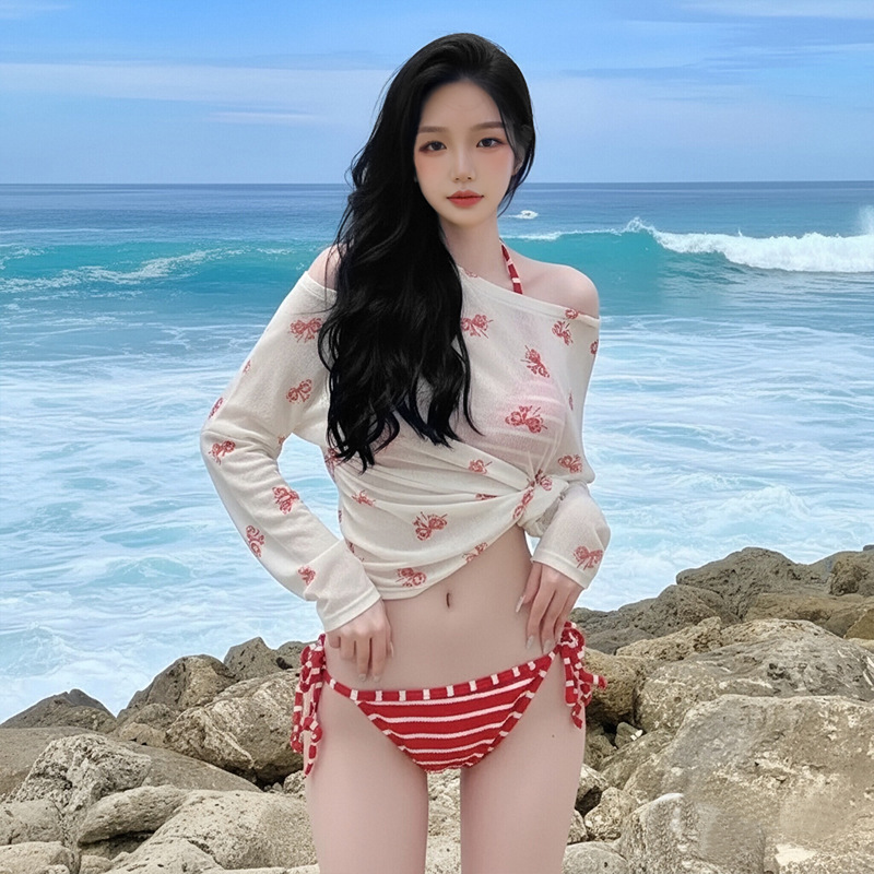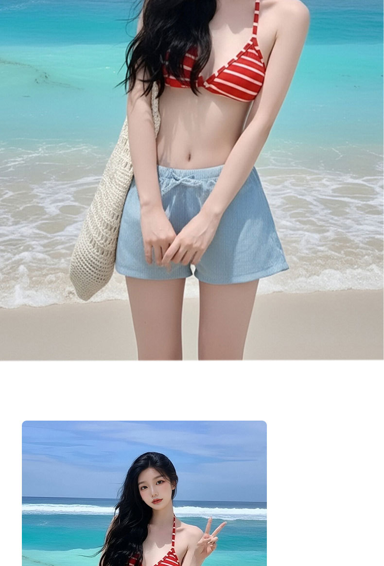 여성용 수영복 2025 새로운 빨간색 줄무늬 스플릿 비키니 3 피스 세트 작은 가슴 푸시 업 섹시한 소녀 핫 소녀 수영복스토어 가기