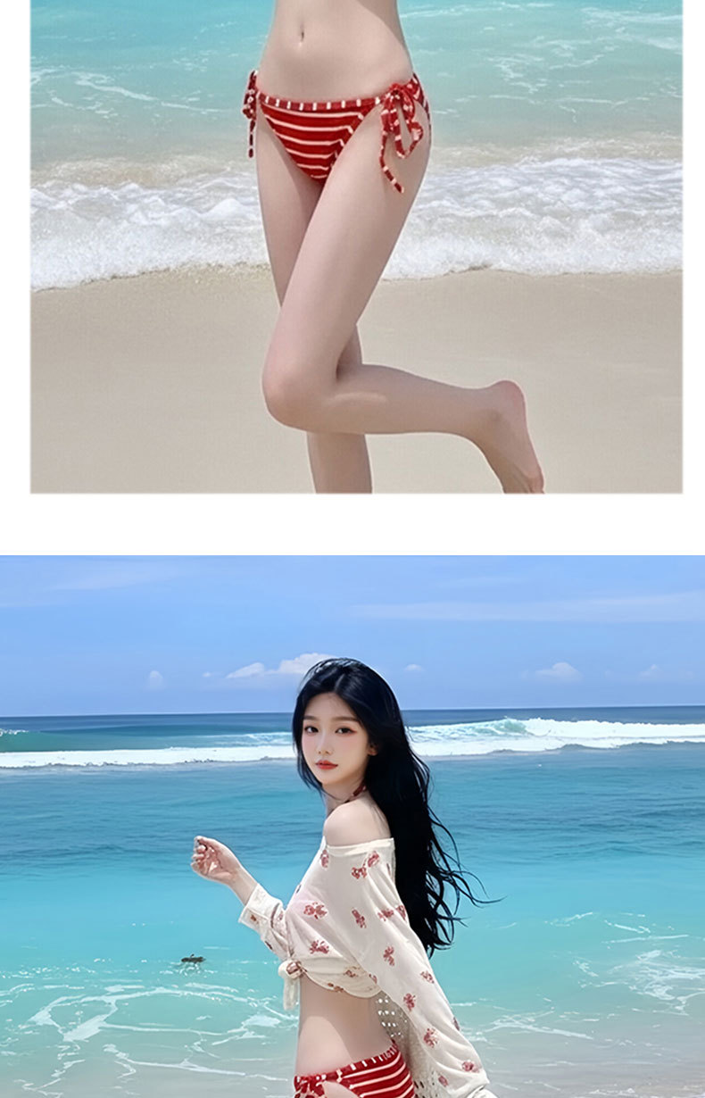 여성용 수영복 2025 새로운 빨간색 줄무늬 스플릿 비키니 3 피스 세트 작은 가슴 푸시 업 섹시한 소녀 핫 소녀 수영복