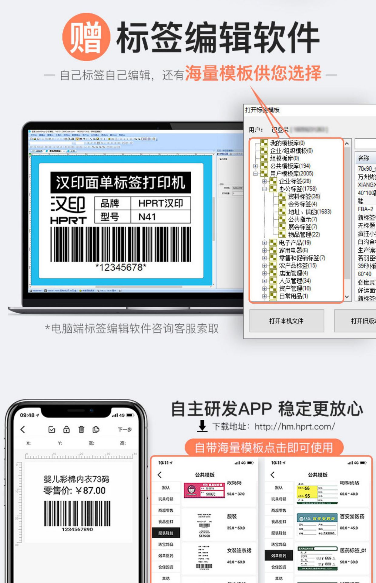 Hanyin 익스프레스 인쇄 기계 N31C/N41 전자 인쇄 기계 열 라벨 익스프레스 라벨 휴대용스토어 가기