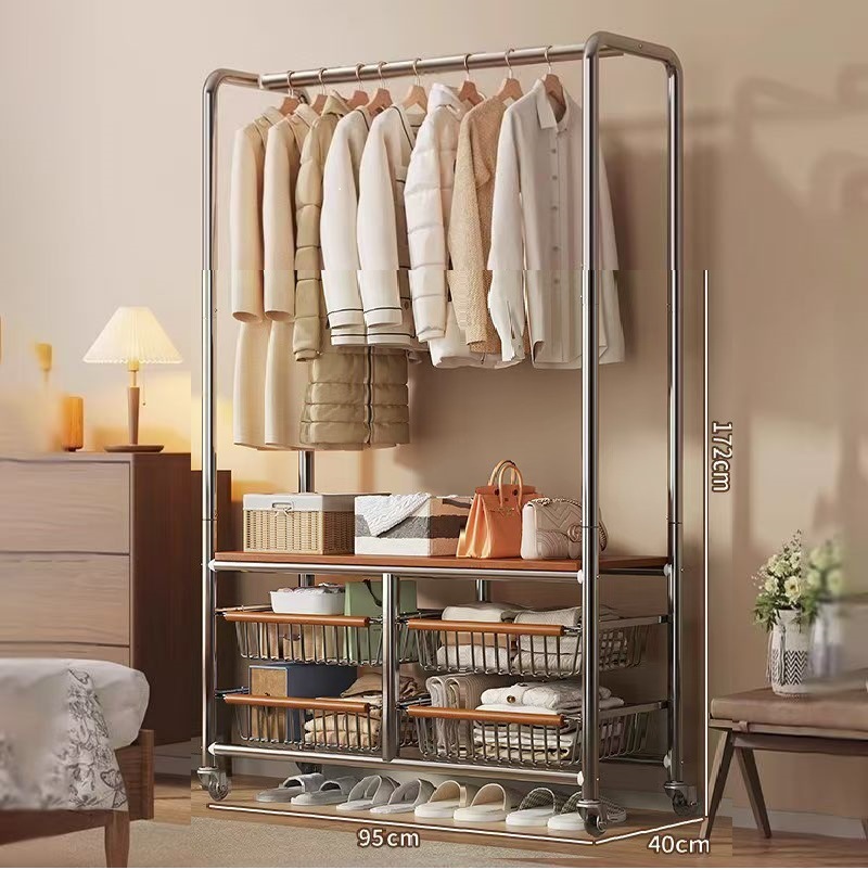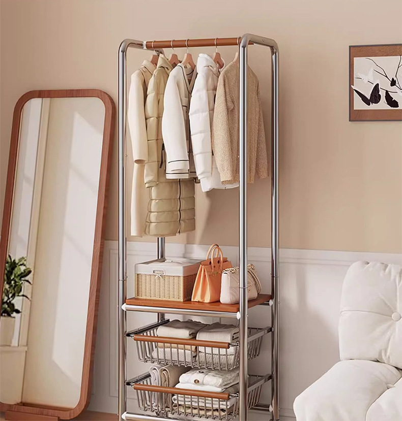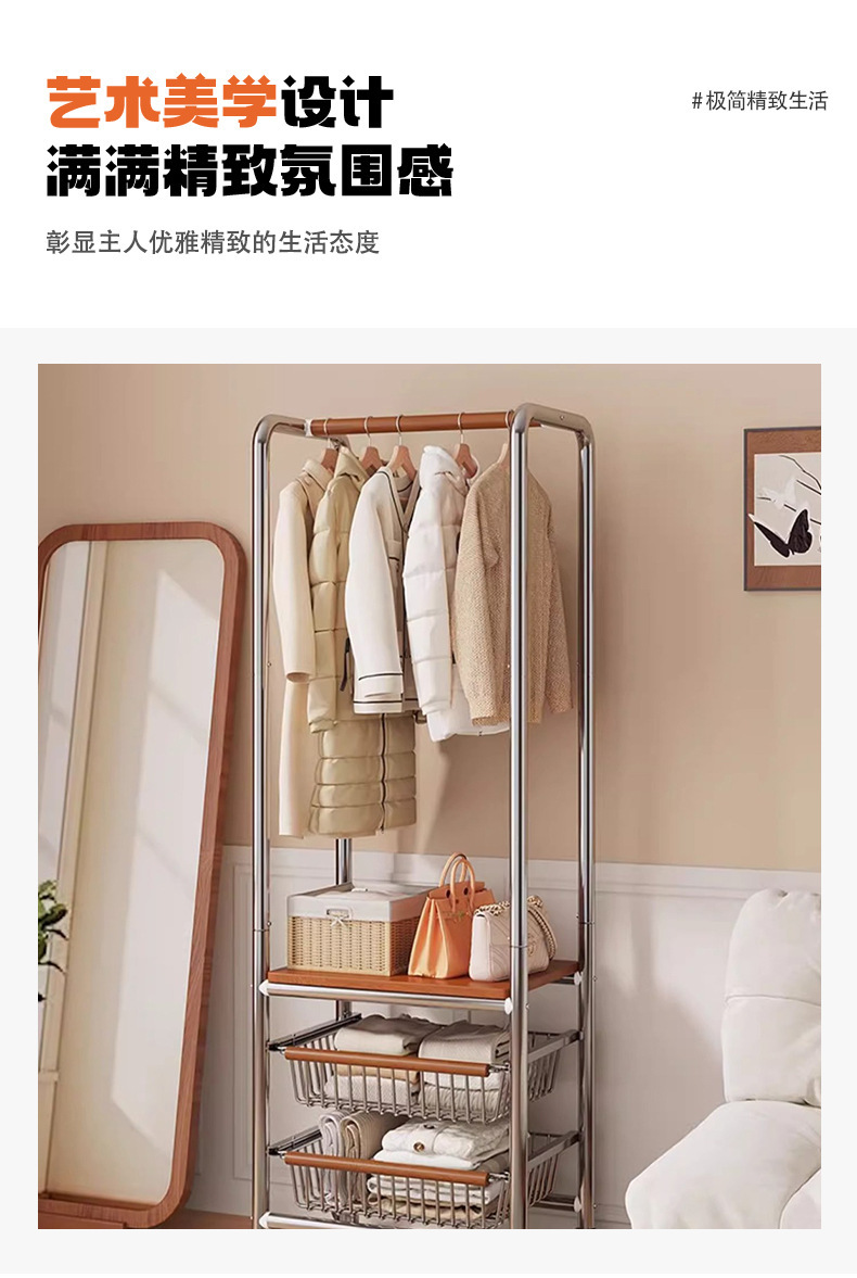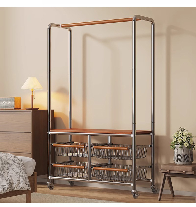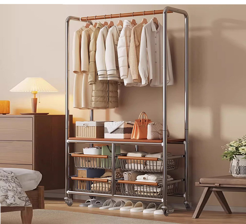 스테인레스 스틸 라이트 럭셔리 코트 랙 이동식 옷 건조 랙 중세 스타일 바닥 침실 거실 옷 걸이 인터넷 연예인 스토리지