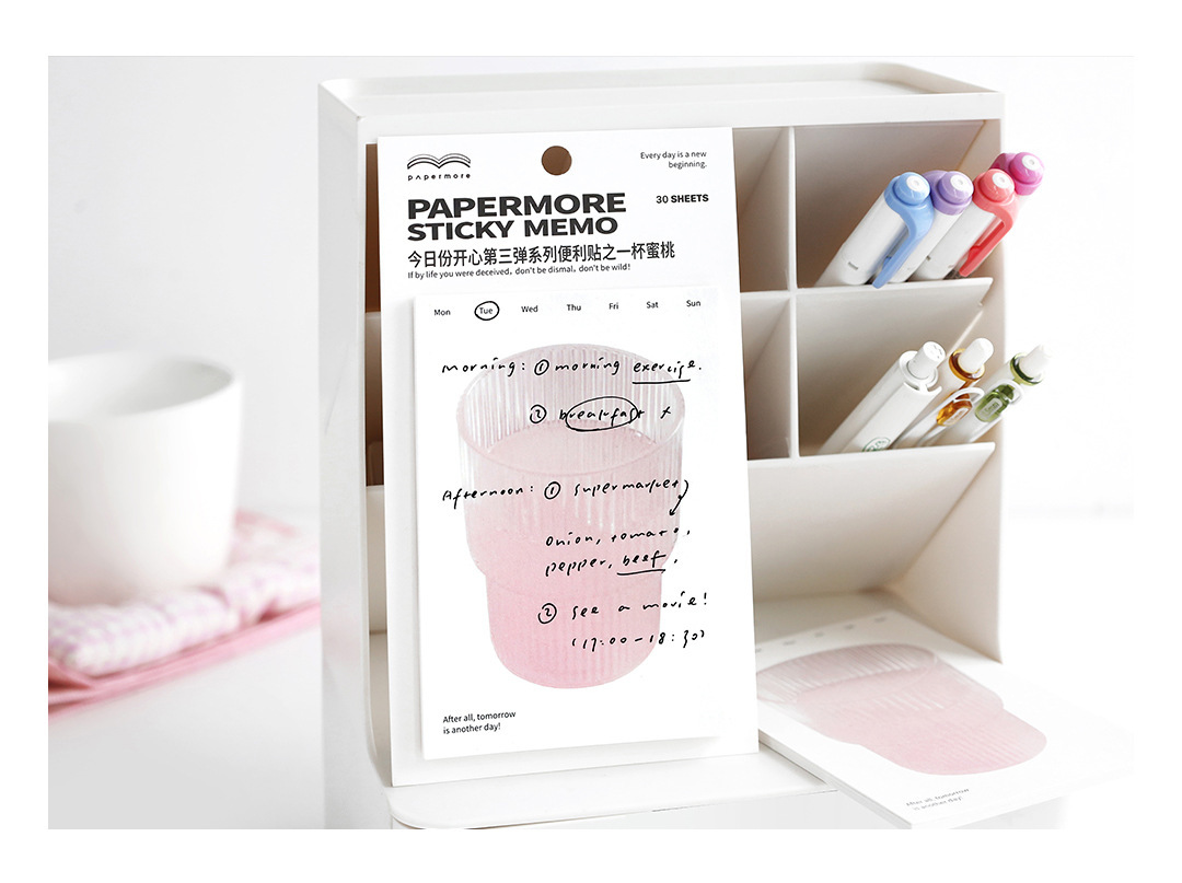 PaperMore 스티커 메모 오늘의 행복한 3발 스티커 메모 끈적끈적한 핸드북 장식 메시지 용지 N회 스티커스토어 가기