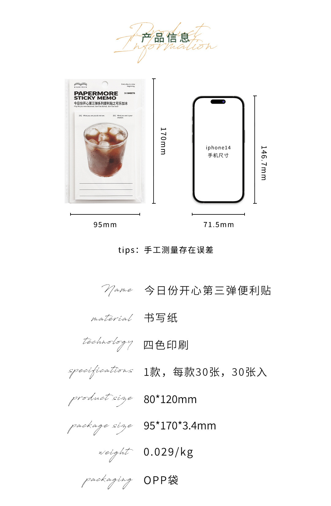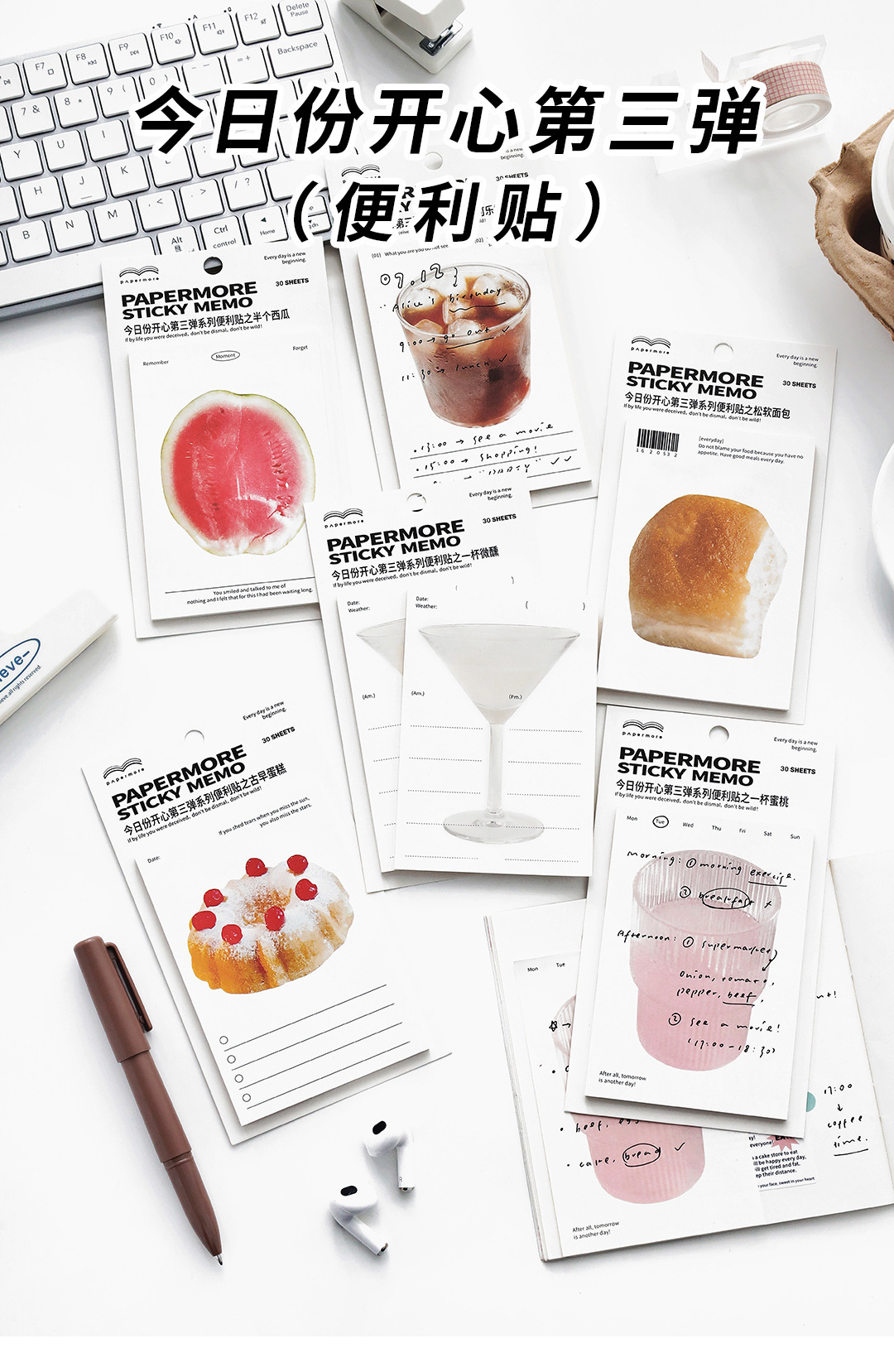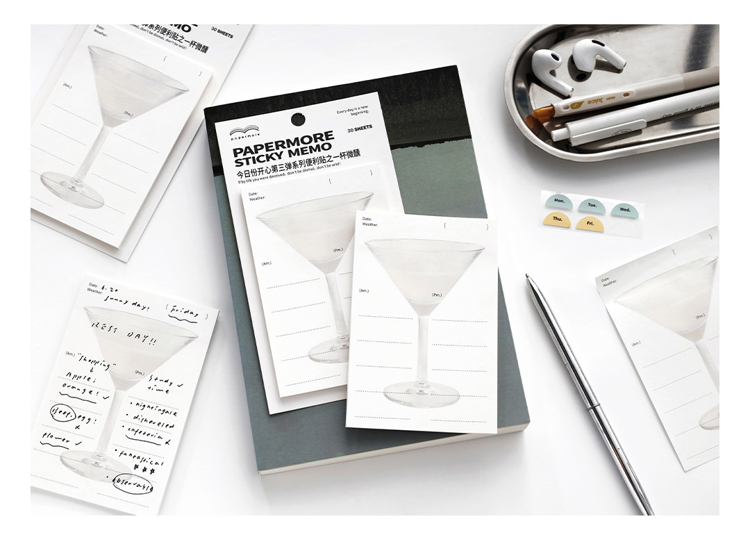 PaperMore 스티커 메모 오늘의 행복한 3발 스티커 메모 끈적끈적한 핸드북 장식 메시지 용지 N회 스티커
