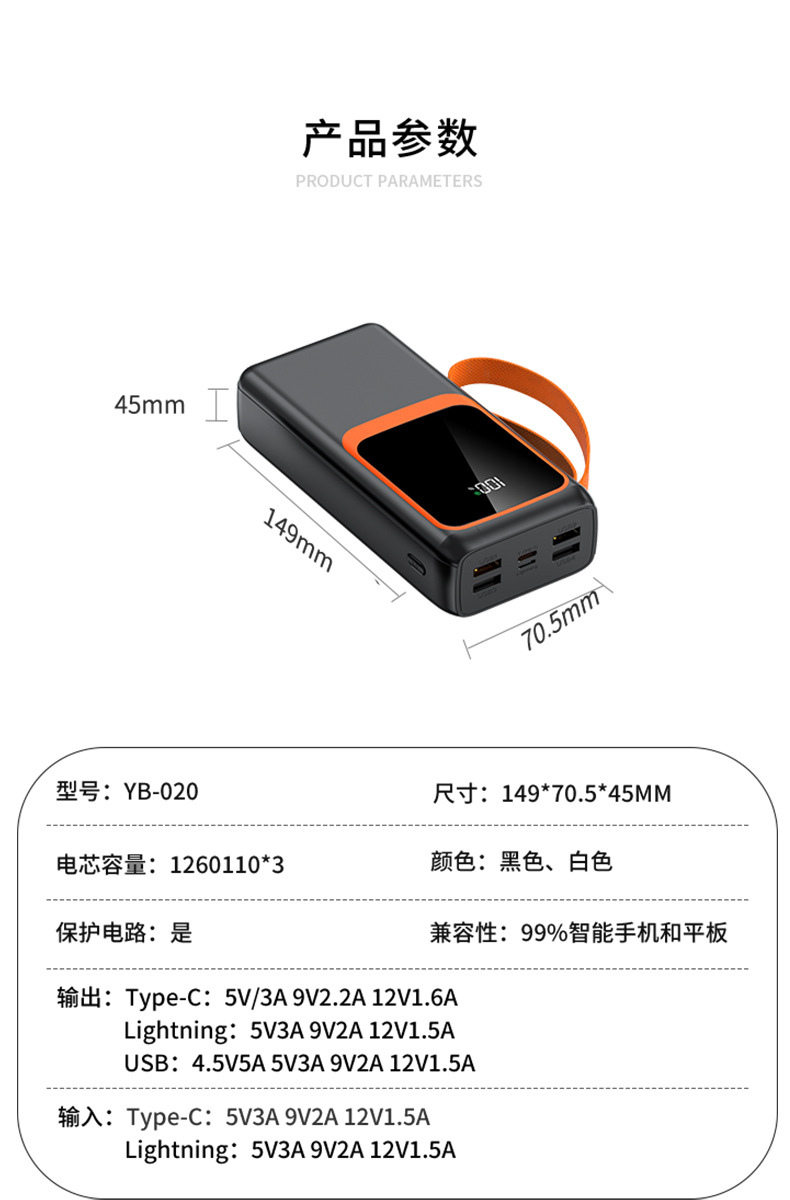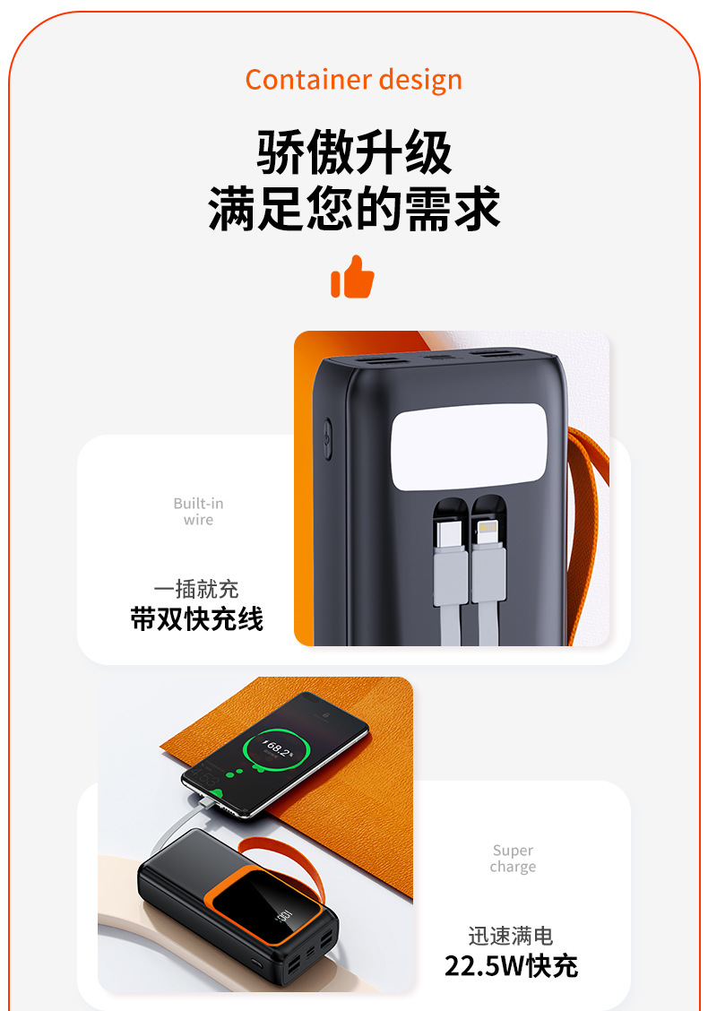 국경 간 22.5w 초고속 충전에는 케이블 보조베터리 30000mAh 야외 캠핑 대용량 모바일 전원 공급 장치가 함께 제공됩니다.스토어 가기