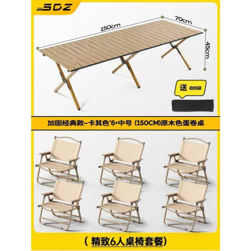 • 테이블과 의자 패키지 - [클래식 강화 모델 - 카키색 6개] + [특대형 - 원목 계란말이 테이블 1]