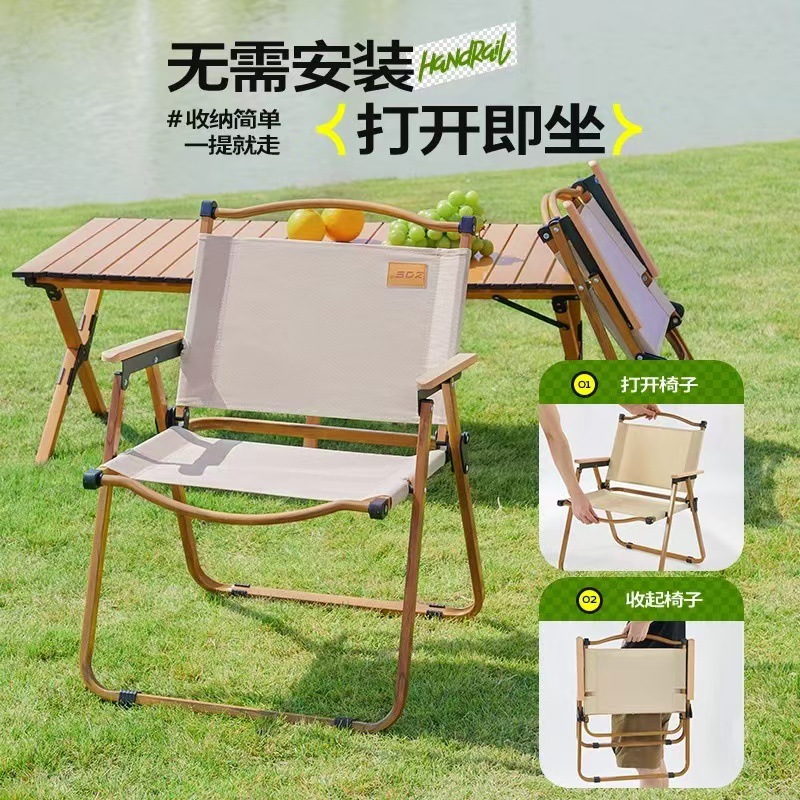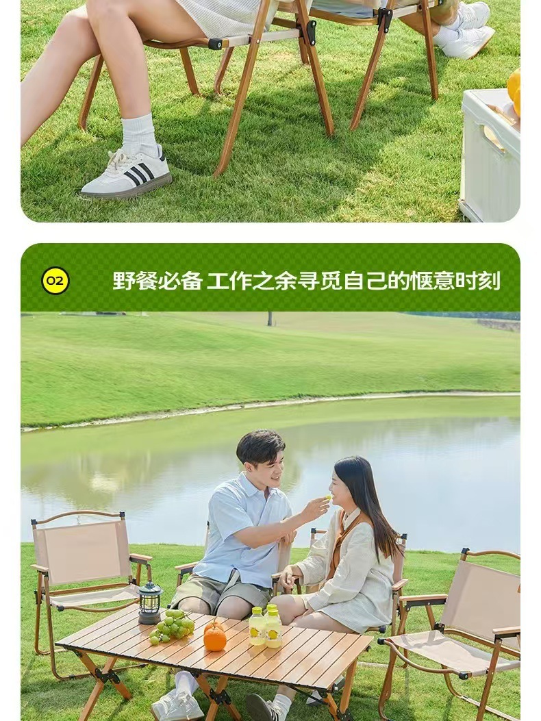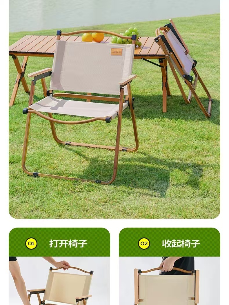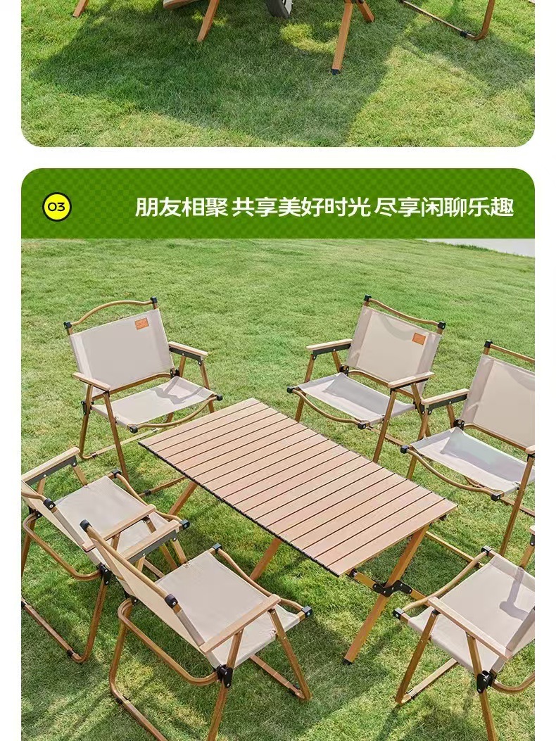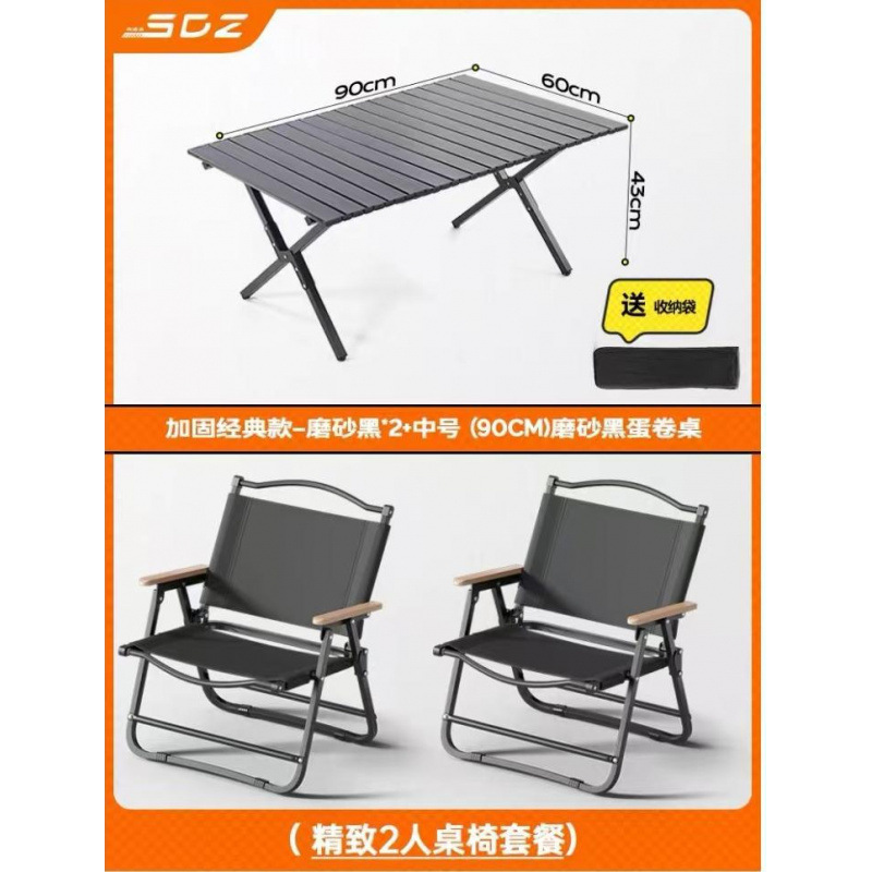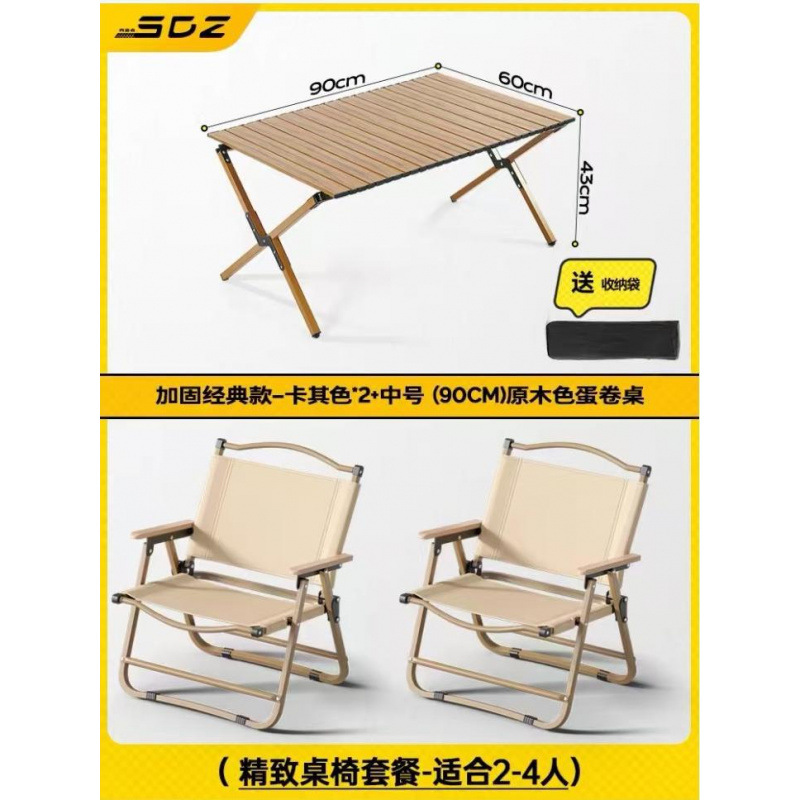 • 테이블과 의자 패키지 - [클래식 강화 모델 - 카키색 2개] + [중형 - 원목 계란말이 테이블 1]