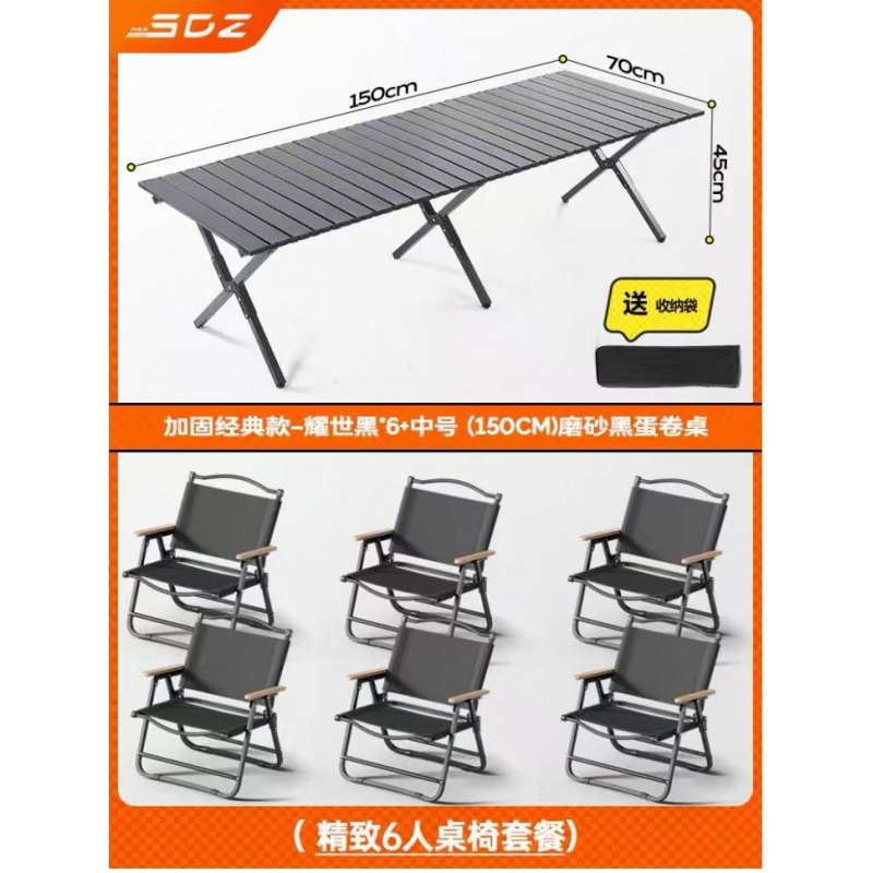 • 테이블과 의자 패키지 - [클래식 강화 모델 - 야오시 블랙 6개] + [특대형 - 반투명 블랙 에그롤 테이블 1]