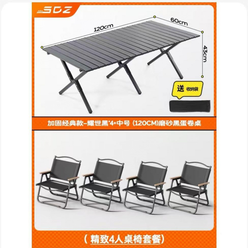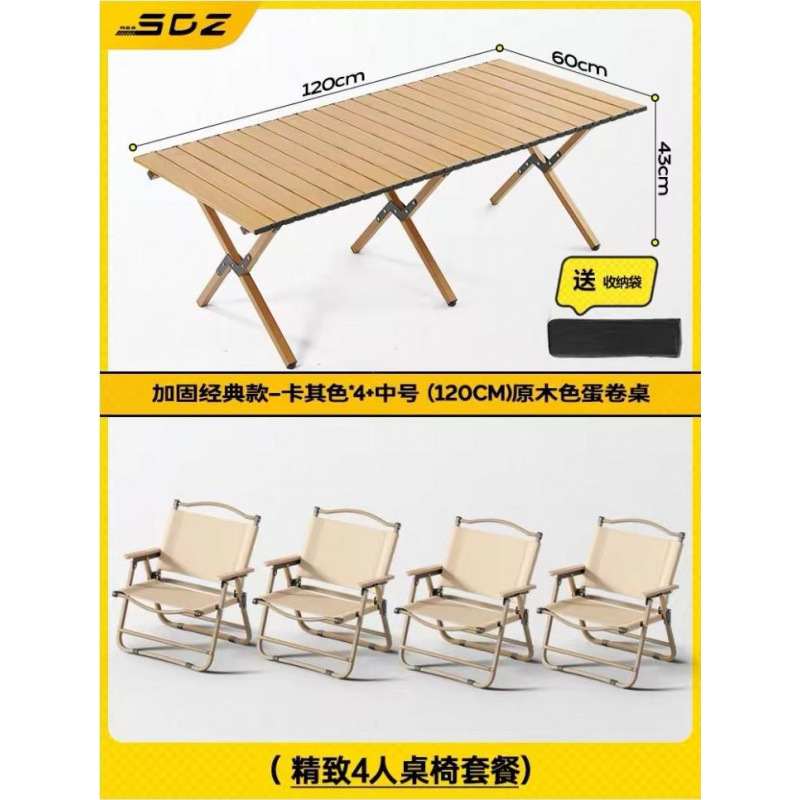 • 테이블과 의자 패키지 - [클래식 강화 모델 - 카키색 4개] + [대형 - 원목 계란말이 테이블 1]