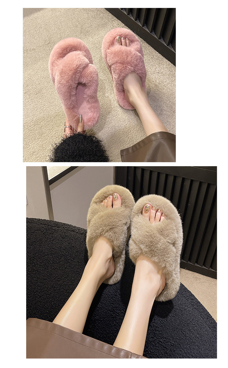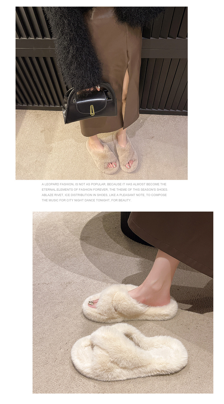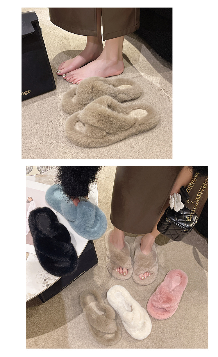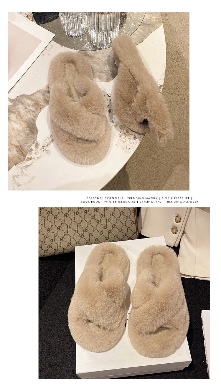 여성용 모피 슬리퍼 2025 새로운 한국어 버전 ins 유행 신발 가을, 겨울 홈 면화 슬리퍼