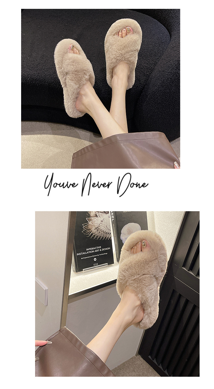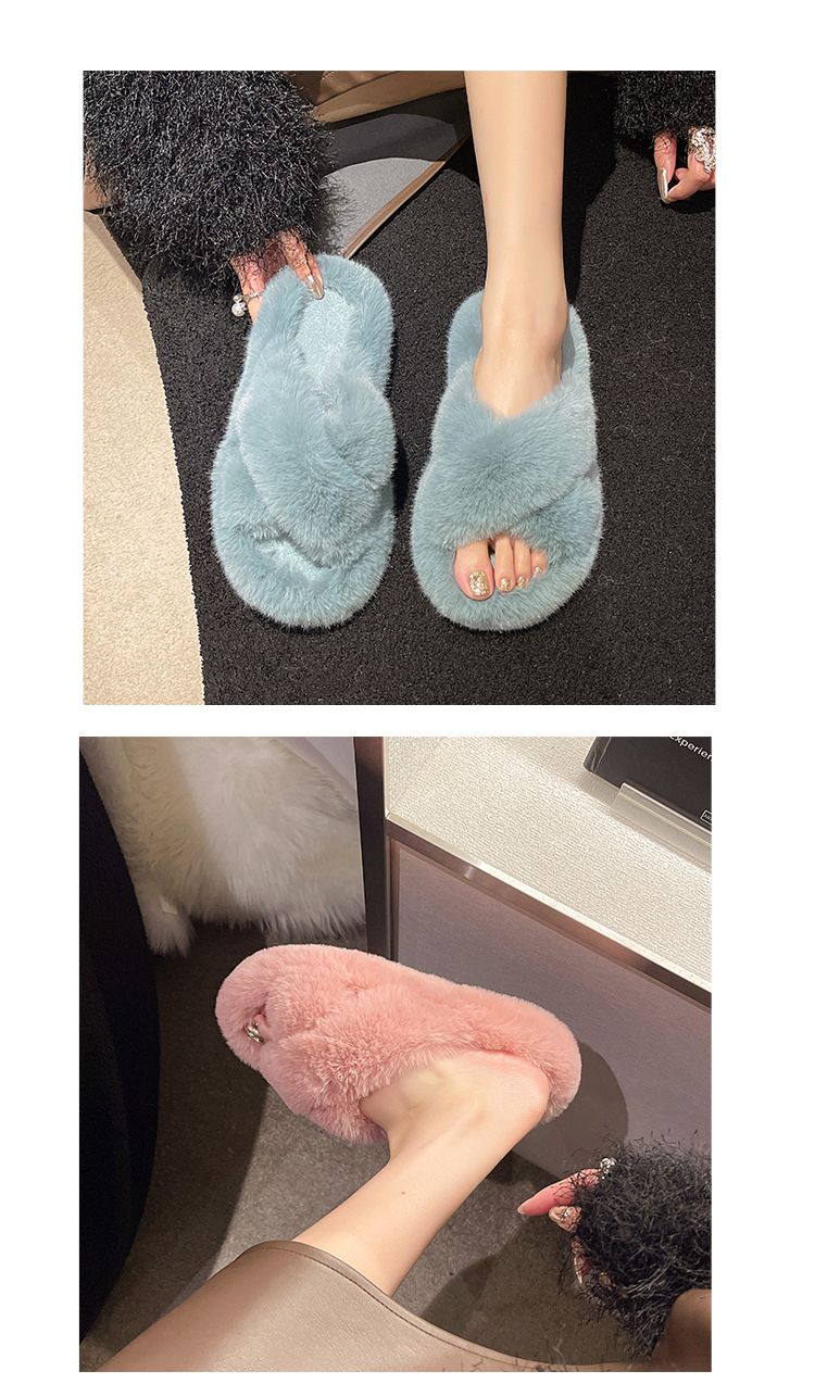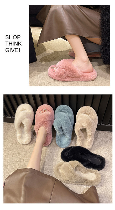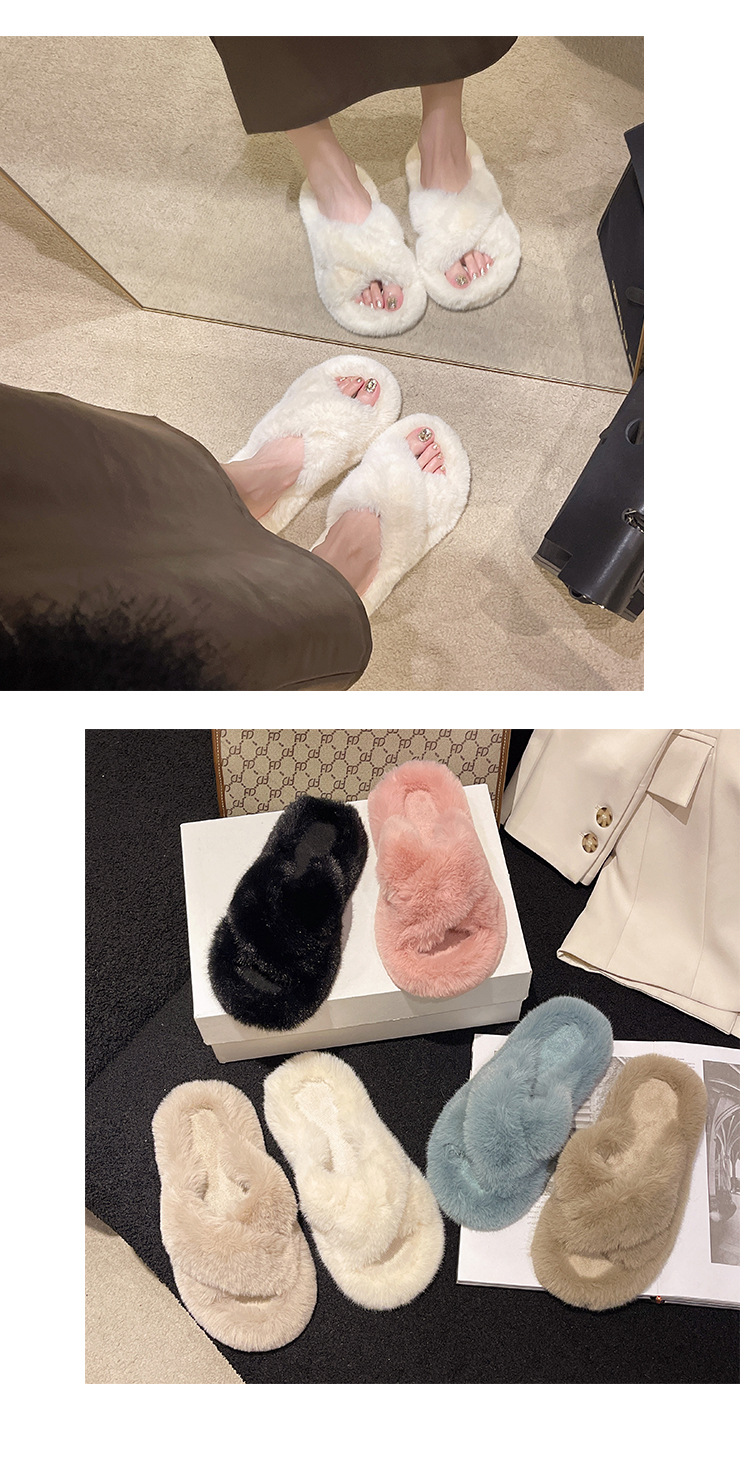 여성용 모피 슬리퍼 2025 새로운 한국어 버전 ins 유행 신발 가을, 겨울 홈 면화 슬리퍼
