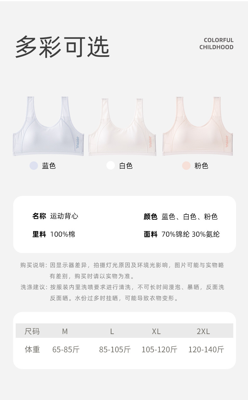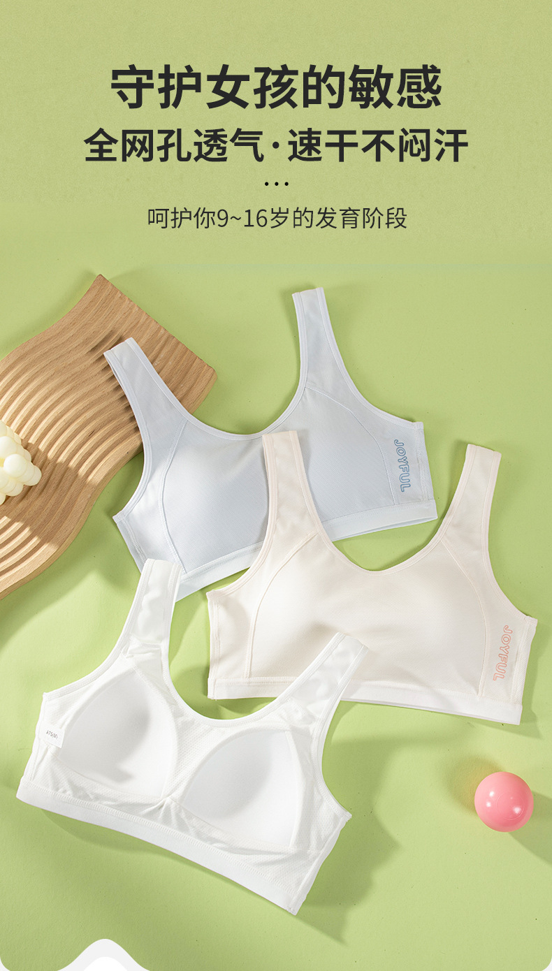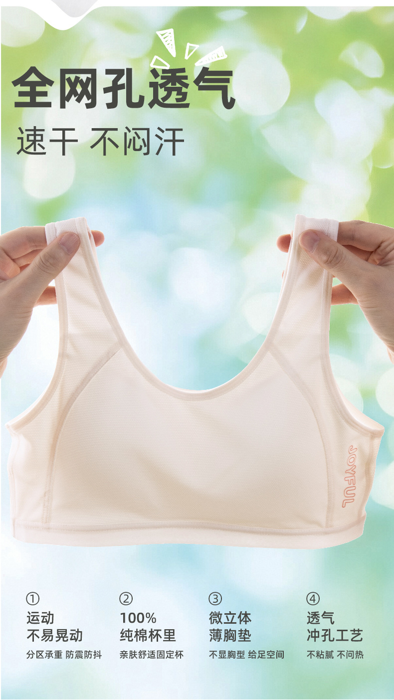 여아발달조끼, 고정삼각컵, 중학생브라, 노출방지, 아름다운등, 통기성, 노와이어 속옷