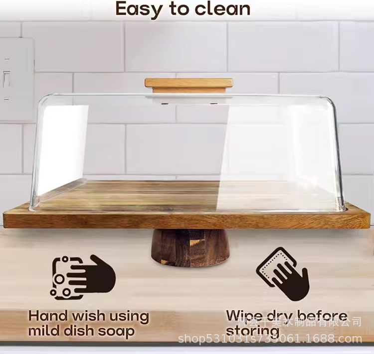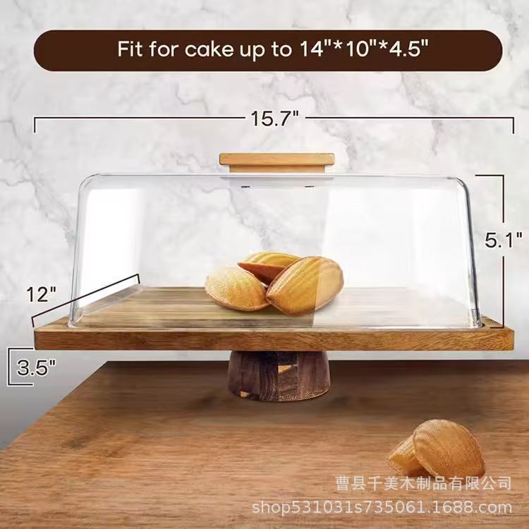 국경 간 아카시아 나무 케이크 접시 케이크 만들기 테이블 단단한 나무 디스플레이 접시 크리스퍼 투명한 높은 디저트 트레이스토어 가기