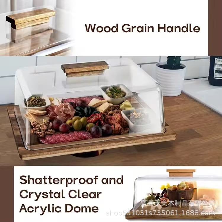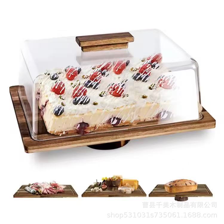 국경 간 아카시아 나무 케이크 접시 케이크 만들기 테이블 단단한 나무 디스플레이 접시 크리스퍼 투명한 높은 디저트 트레이